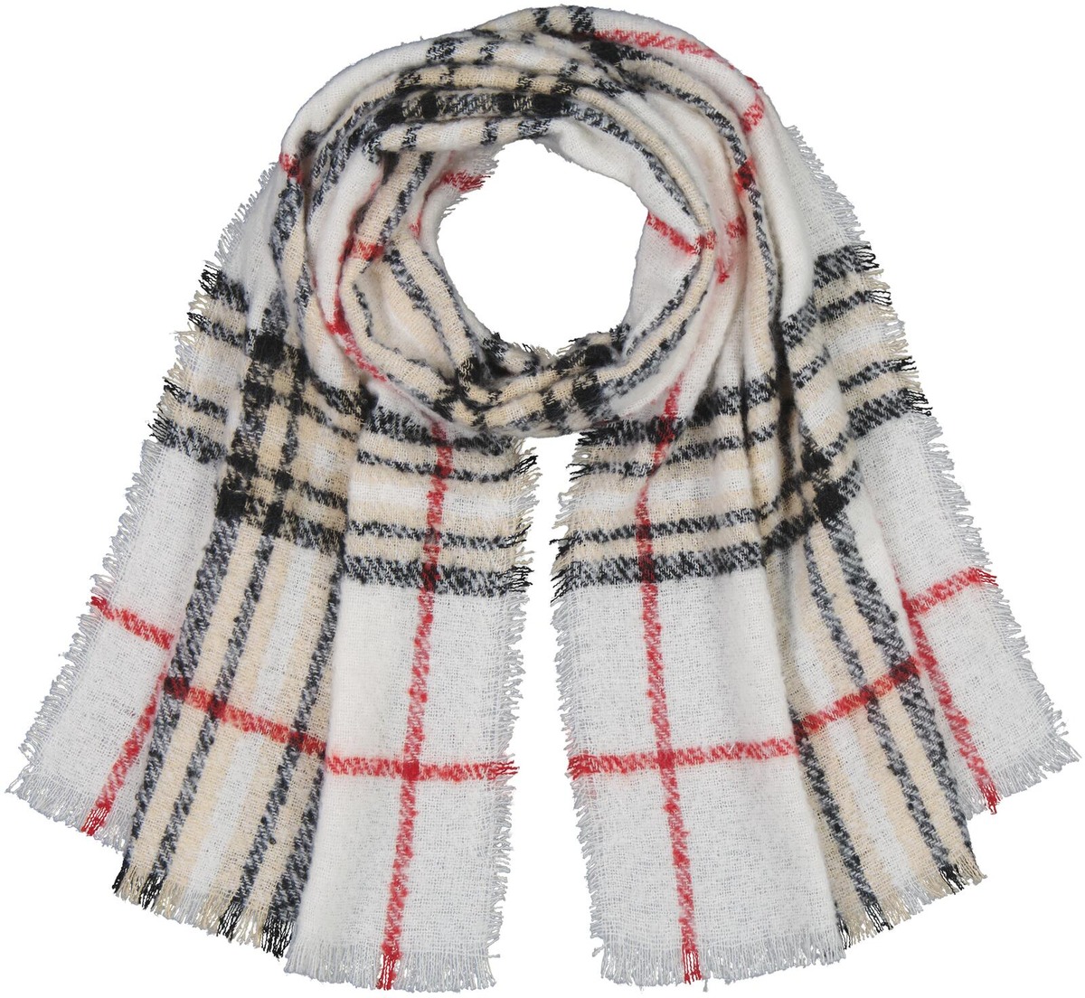 Pehmeä kaulaliina jossa eläväpintainen lanka yhdistettynä klassiseen ruutukuosiin. Kaulaliinan koko 40x180 cm, päissä lyhyet leikatut hapsut.