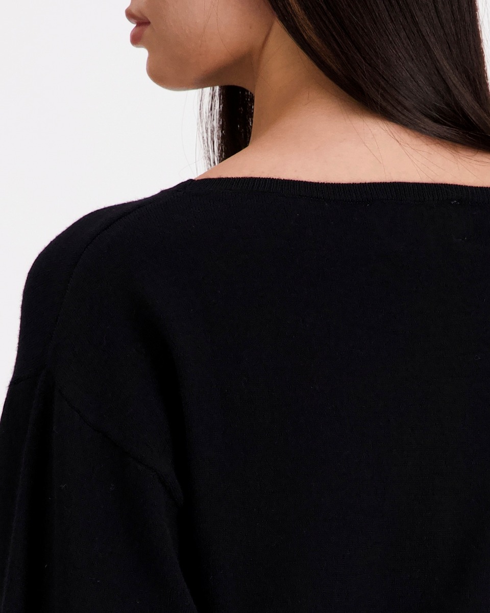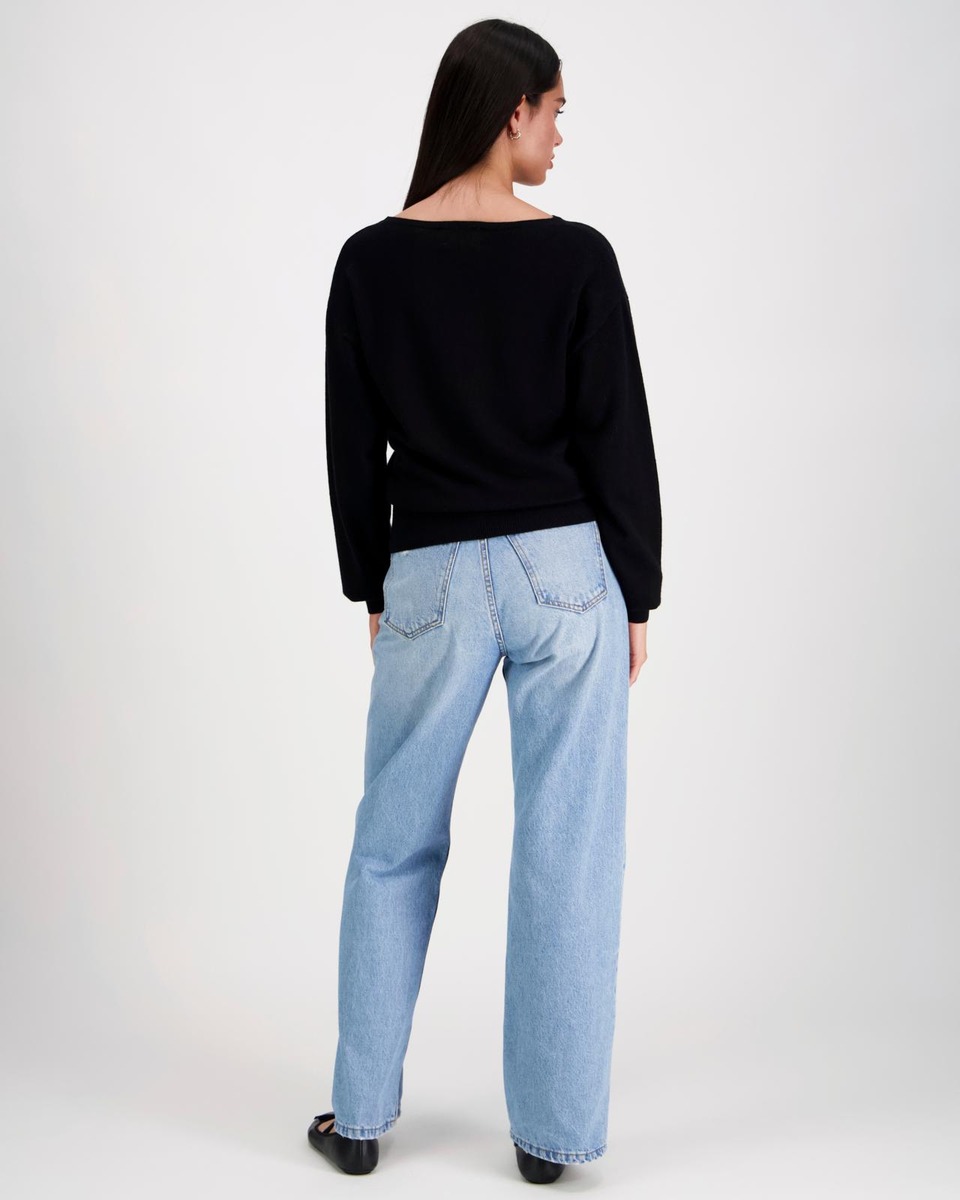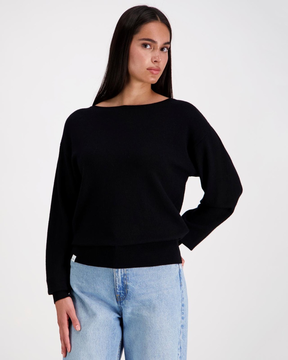 Normaalisti istuva neule, jossa on venepääntie. Valmistettu 100 % merinovillasta.
