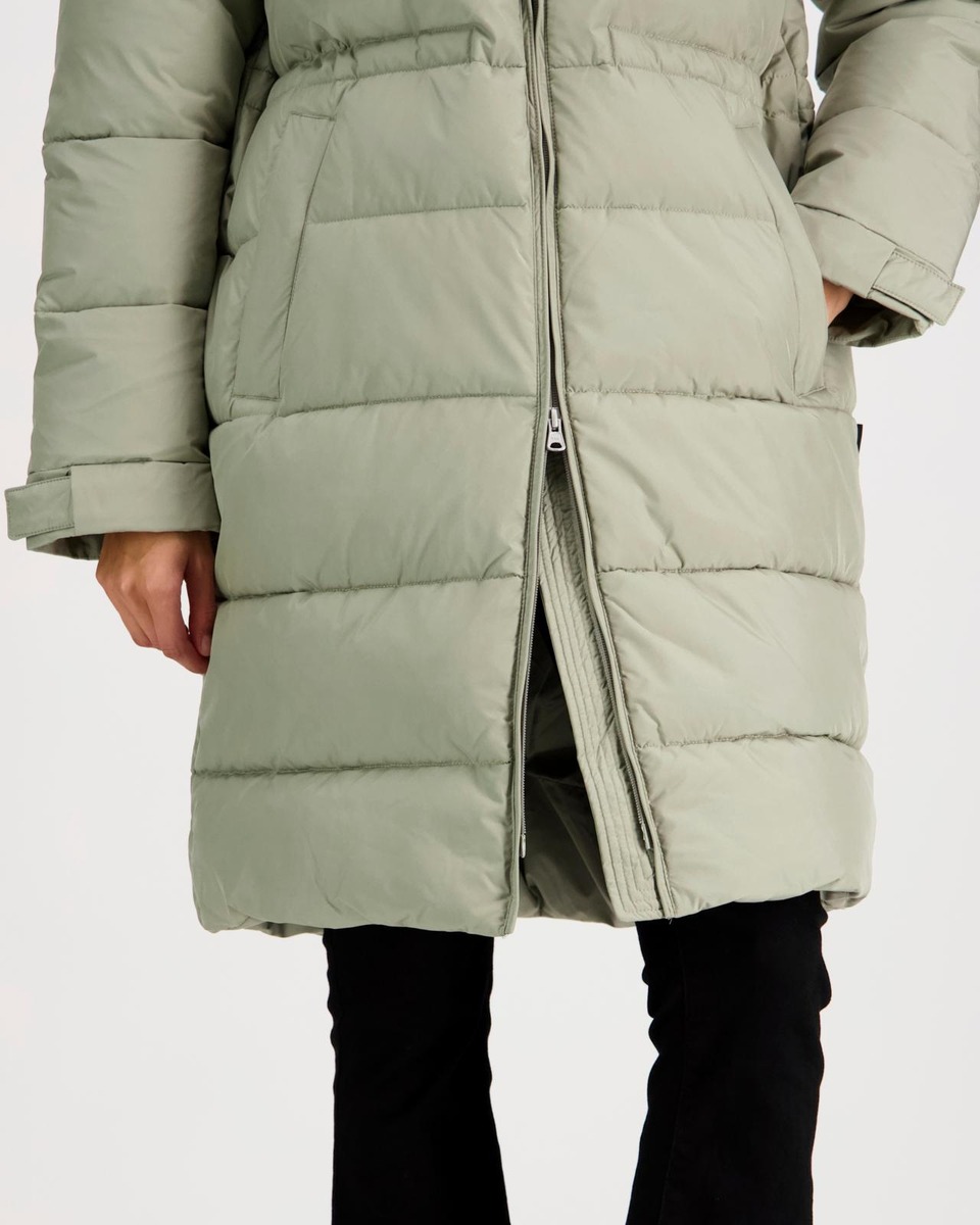 Rentomallinen midimittainen toppatakki, joka pitää sinut lämpimänä. Maren Parkan vuori on valmistettu 100 % Sorona®-kierrätetystä polyesteristä, joka jäljittelee untuvaa. Osittain kasvipohjainen Sorona®-toppaus on hengittävä ja säilyttää lämpöä. Vyö mahdollistaa istuvuuden säätämisen tarpeen mukaan.