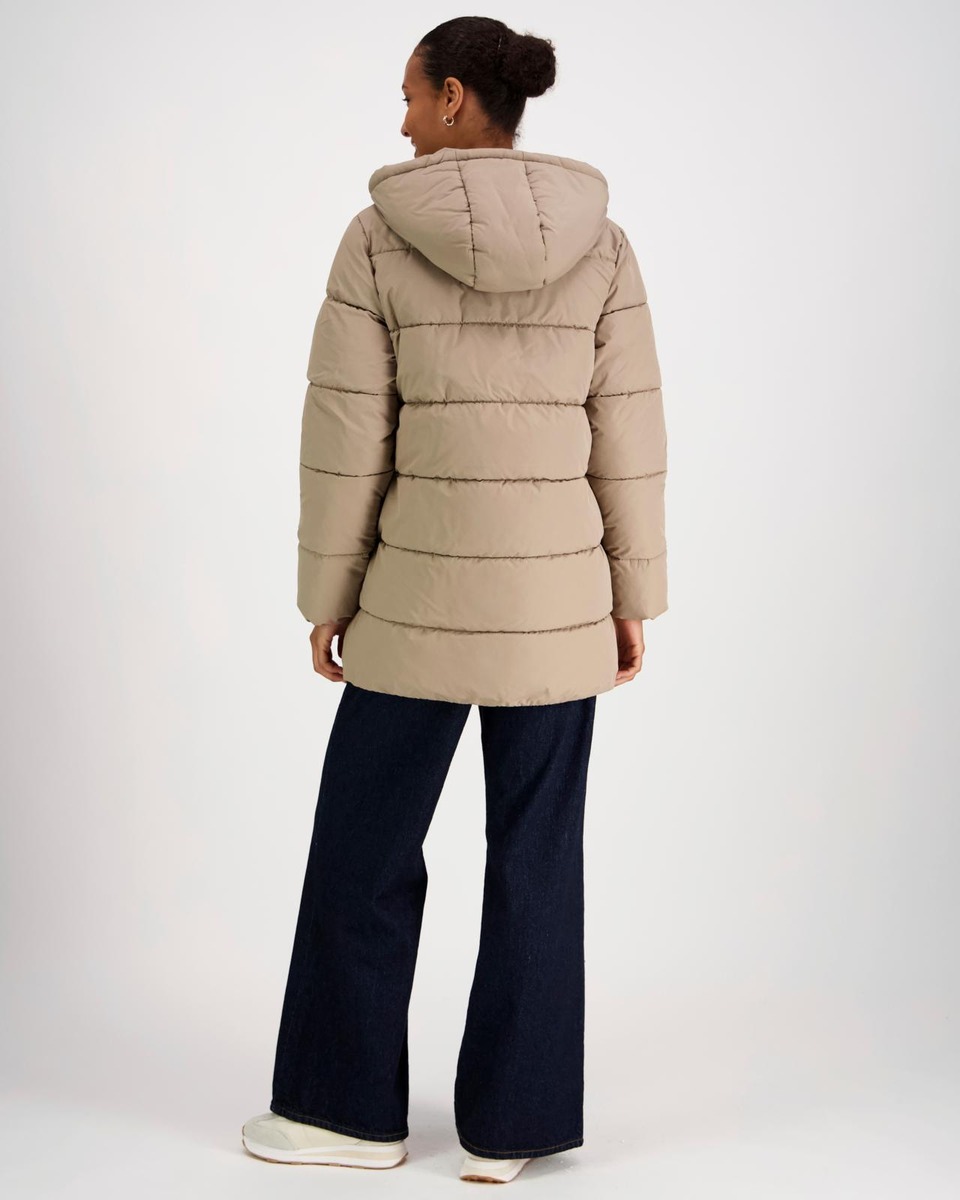 Lämmin ja muhkea Lumi-toppatakki miellyttävän kevyellä vanuvuorella. Takissa on lämmin huppu, jossa kiristysmahdollisuus. Hihansuissa ja helmassa on kuminauhareunus. Takissa on sivutaskut ja tuulilistallinen kaksisuuntainen vetoketjukiinnitys. Takin pituus koossa M on noin 85 cm. Materiaali on laadukasta, vettähylkivää ja kierrätyspolyesteria. Takissa on Sorona-vanu.