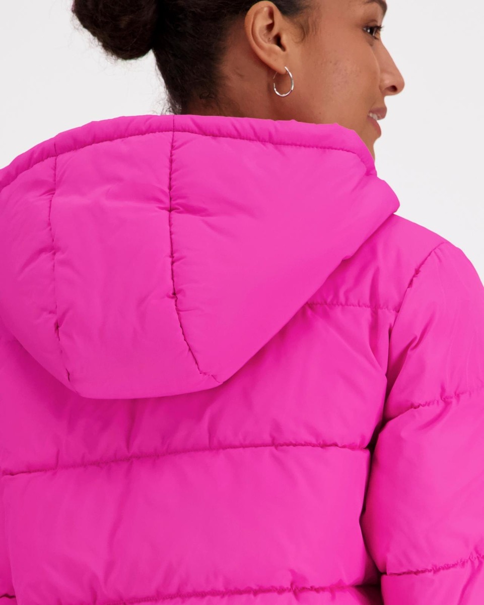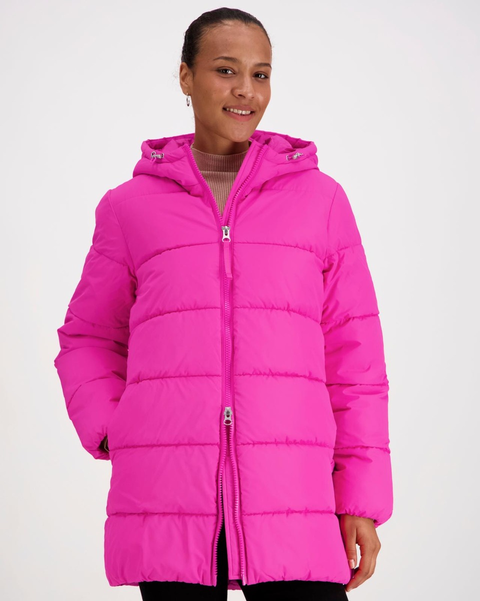 Lämmin ja muhkea Lumi-toppatakki miellyttävän kevyellä vanuvuorella. Takissa on lämmin huppu, jossa kiristysmahdollisuus. Hihansuissa ja helmassa on kuminauhareunus. Takissa on sivutaskut ja tuulilistallinen kaksisuuntainen vetoketjukiinnitys. Takin pituus koossa M on noin 85 cm. Materiaali on laadukasta, vettähylkivää ja kierrätyspolyesteria. Takissa on Sorona-vanu.