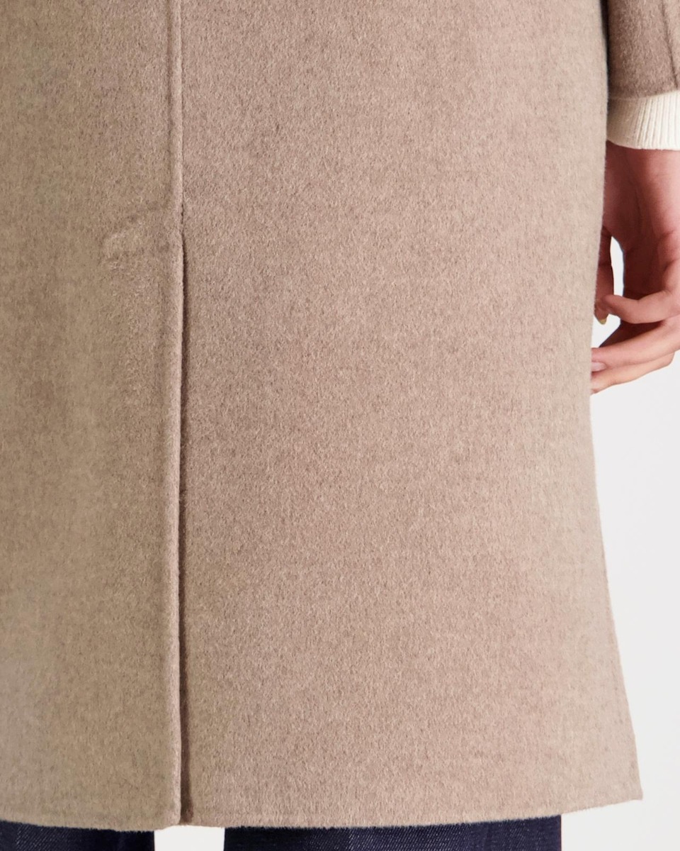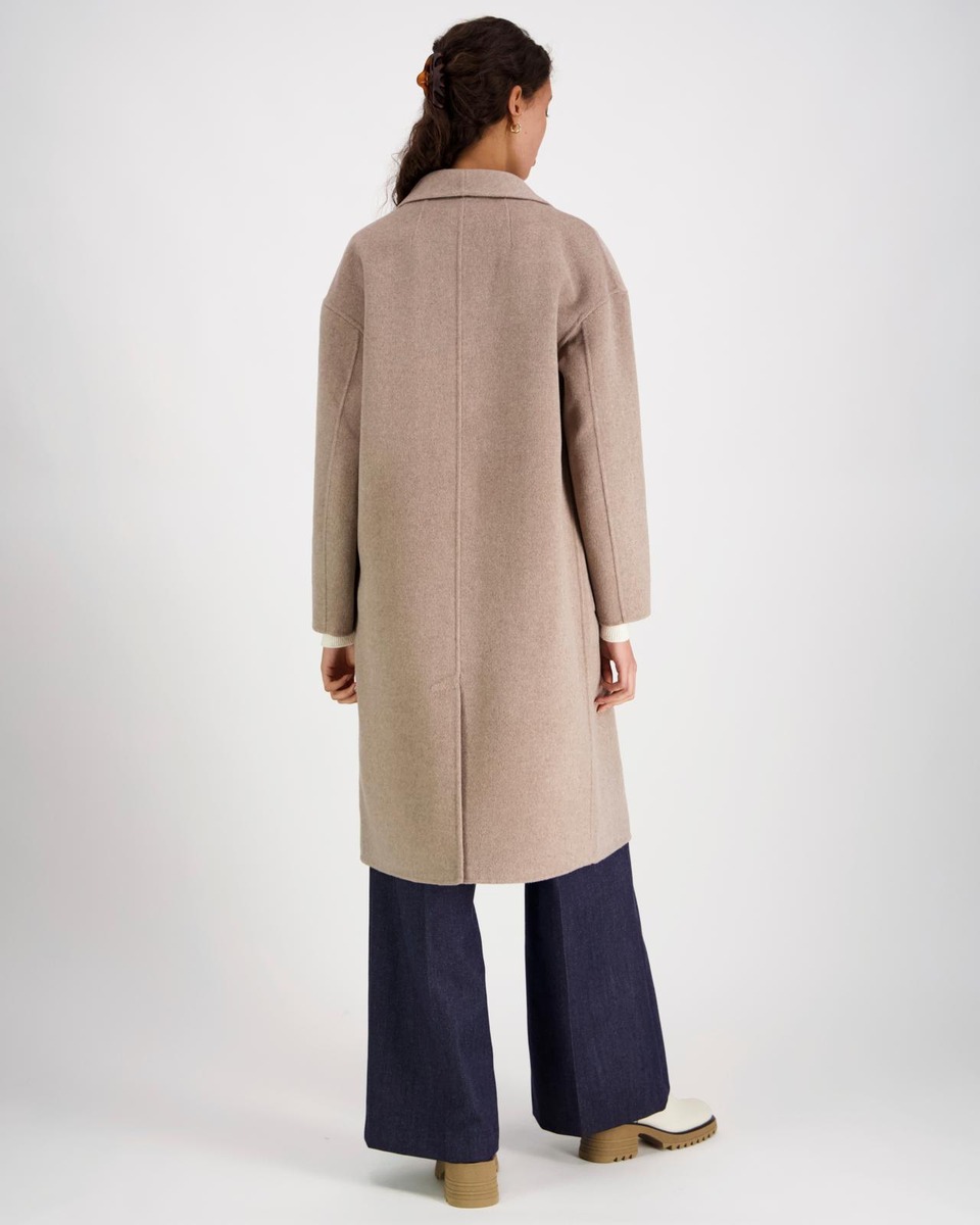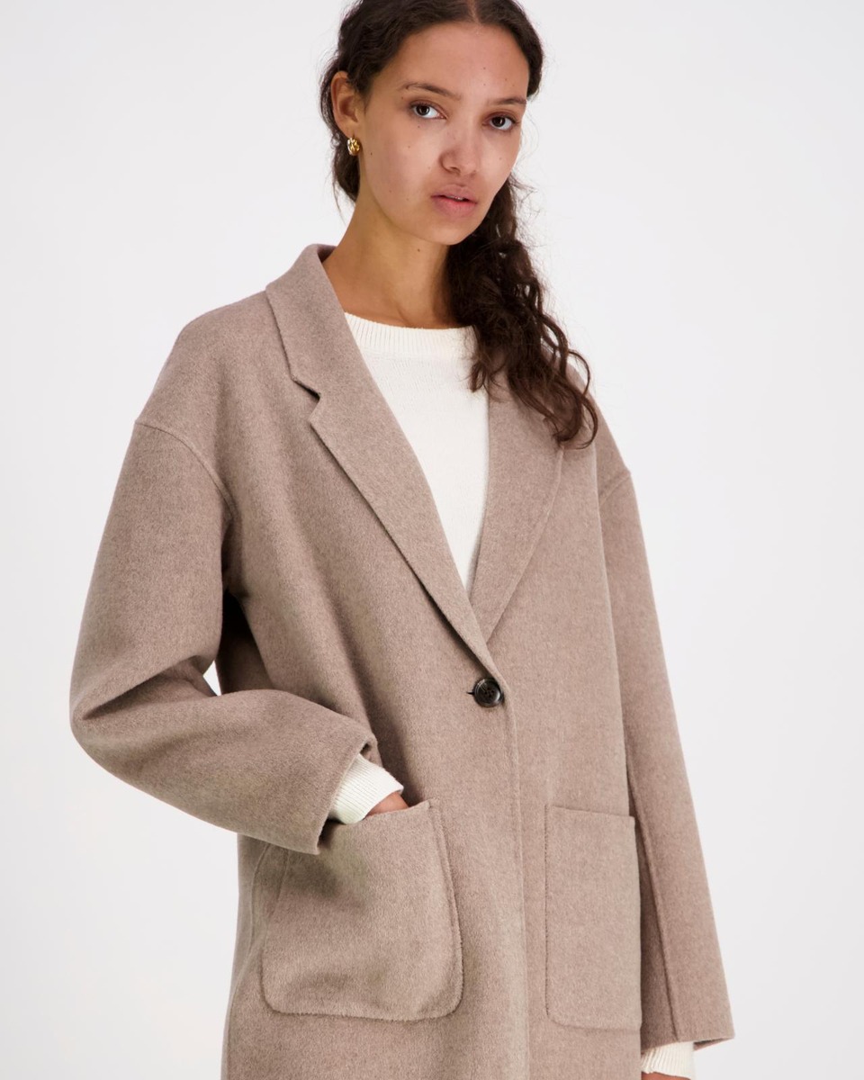 Tyylikäs klassinen Ylle-villakangastakki. Materiaali on laadukasta villa-polyesteri sekoitetta. Vuorittoman takin saumat ovat kauniisti sisältä ja ulkoa huolitellut. Takissa on edessä nappikiinnitys ja päällitaskut. Suoralinjaisessa klassisessa takissa on takana halkio. Takin pituus koossa M on noin 110 cm.