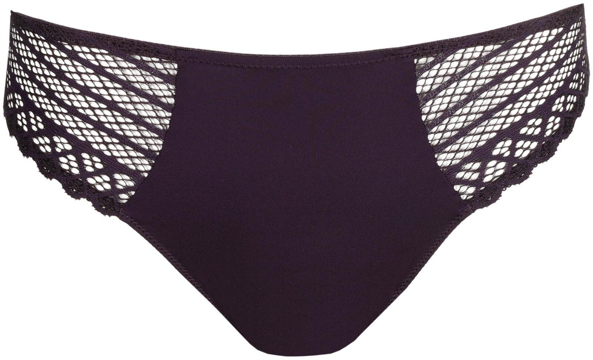 Sensuelli ja ajaton riomallinen alushousu, joka viimeistelty kaunilla pitsillä. Upea lämmin ametistin sävy.