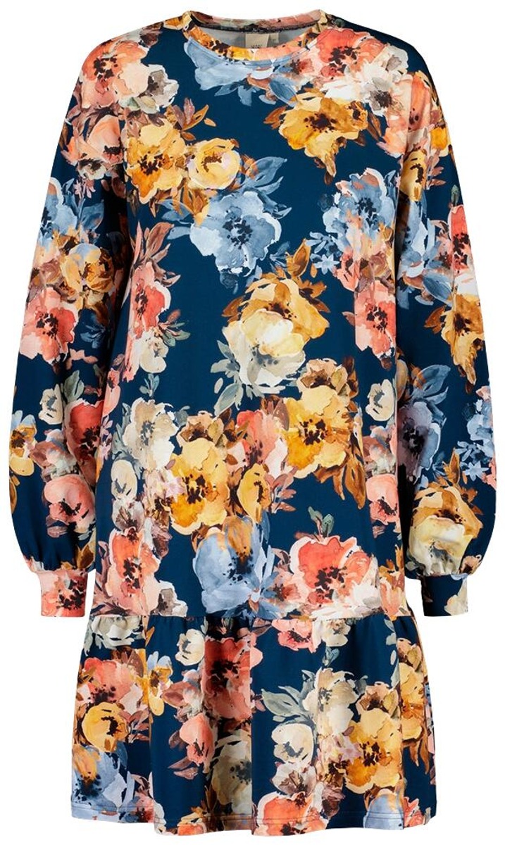 Ruffle Sweatshirt Dress on valmistettu ihanan pehmeästä luomupuuvillaisesta joustocollegesta. Collegemekossa on väljä oversize- istuvuus, lyhyehkö helman pituus, laskettu olkalinja, pitkät hihat ja helmaa koristaa leikkisä frilla.