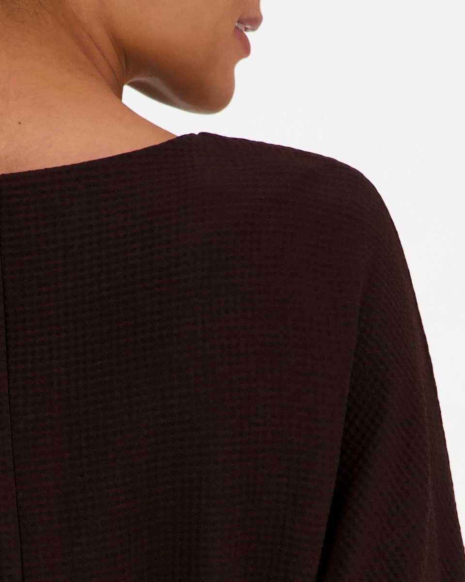 Naisten kimonohihainen pusero. Edessä pystysauma sekä vyötäröllä nyöri, jolla paidan istuvuutta voi säätää. Hieman taaksepäin pitenevä helma. Valmistettu Suomessa ja Virossa; suunnittelu, kaavoitus ja leikkaus Kajaanissa, ompelu ja värjäys Virossa. Kangas on valmistettu Portugalissa ja se on Öko-Tex 100-sertifioitua. Kankaassa käytetty kierrätetty polyesteri on GRS-sertifioitua.