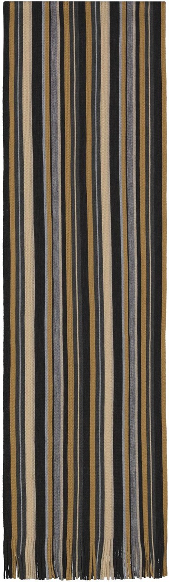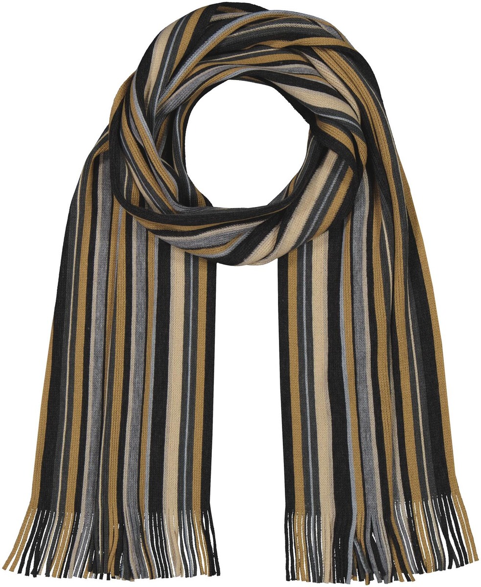 Hillitty raidallinen neulekaulaliina pehmeää akryyliä. Koko 26x180 cm.