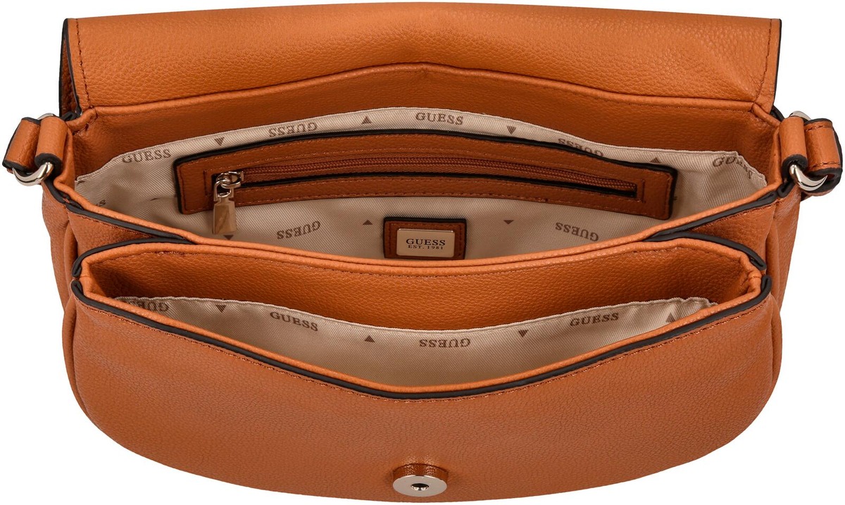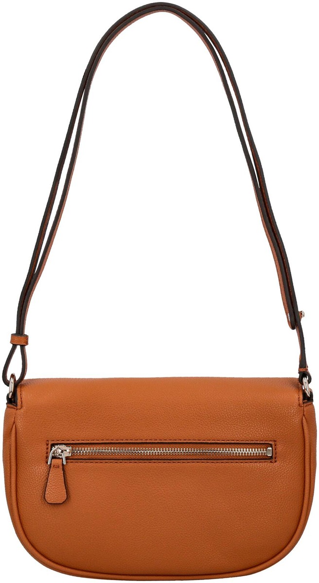Crossbody laukku pitkällä säädettävällä kantohihnalla. Laukun läppä aukeaa painonapilla ja sisältä löytyy kaksi avolokeroa ja pieni vetoketjutasku. Lisäksi laukun takapuolella vetoketjutasku.