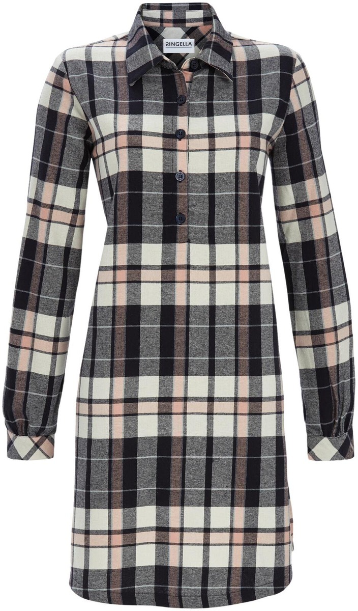 Pitkähihainen flanelli yöpaita, ruutukuosi, napit edessä, pituus 95 cm
