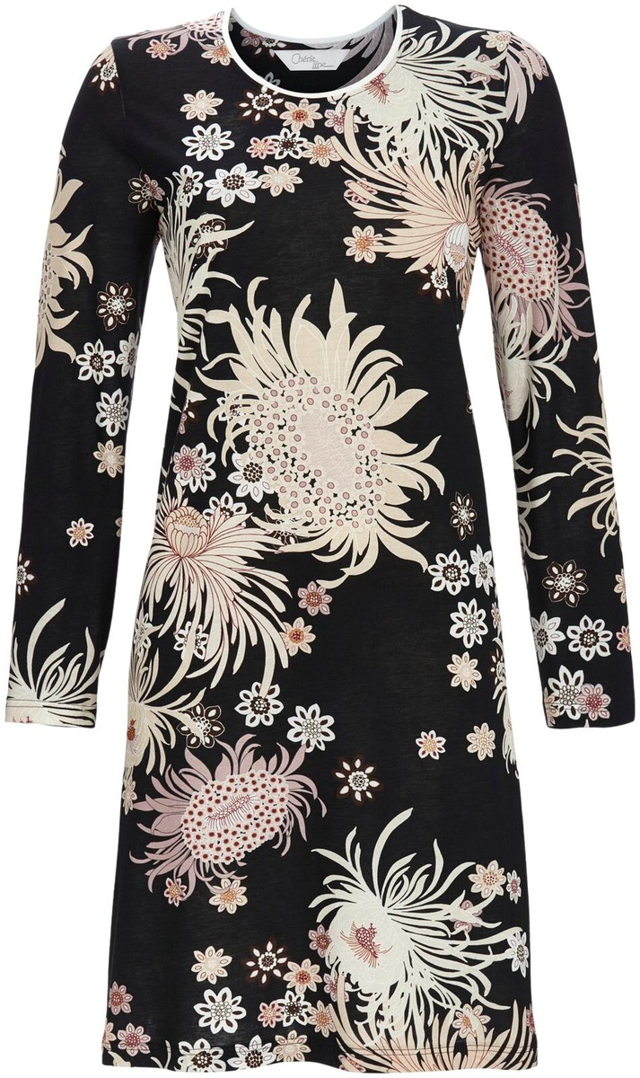 Pitkähihainen yöpaita, iso kukkakuosi, O-aukko, pituus 95 cm
