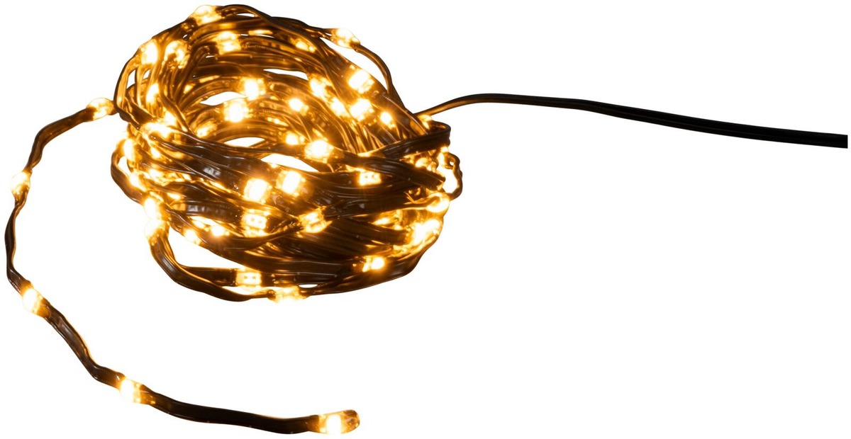Ulkovalosarja ShineLine, jossa on 100 amberinväristä LEDiä. Valosarjan kokonaispituus on 1000cm, josta valojen osuus 500cm. Sisältää ajastimen. Muuntaja 36V. Ulkokäyöttöön sopiva.