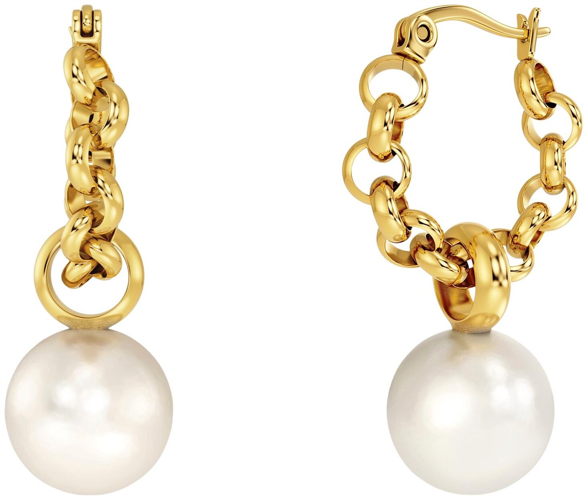 Ketjurenkaassa roikku irrotettava helmiäishelmi. Renkaan halkaisija 20mm, helmen 12mm.