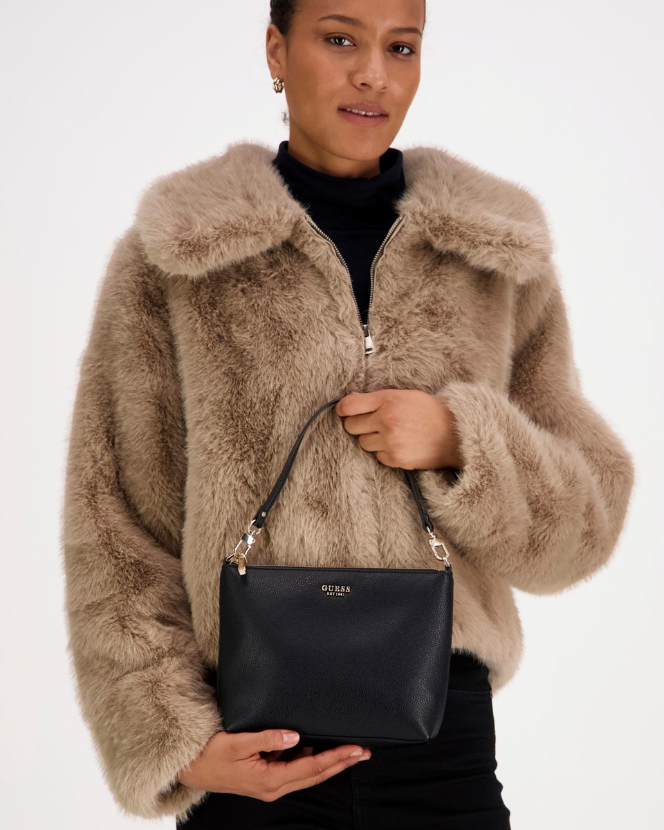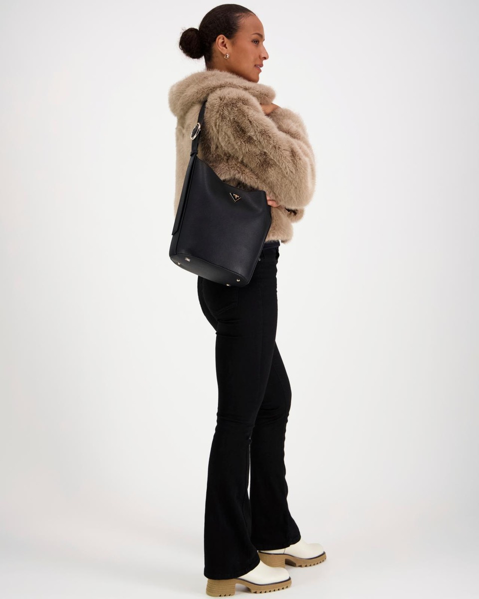Kaksi laukkua yhdessä. Suuremmassa bucket laukussa kiinteä lyhyt olkahihna joka säädettävissä. Laukussa painonappitasku ja vetoketjutasku. Lisäksi takaosassa avotasku. Pienemmässä laukussa pitkä irroitettava kantohihna ja vetoketjusulku.