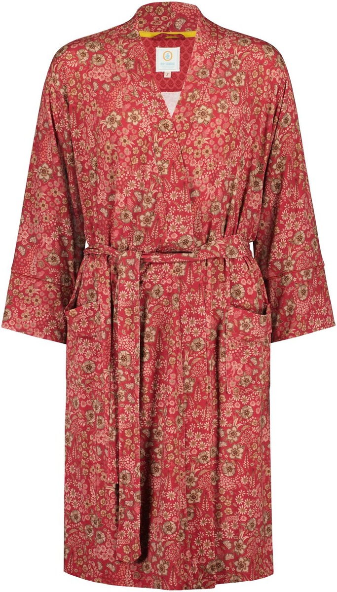 Ylellisen pehmeä kimono, kauniit yksityiskohdat ja vyö. Hihankäänteissä raitakuosi, joka yhdistyy malliston raitahousujen kanssa setiksi.