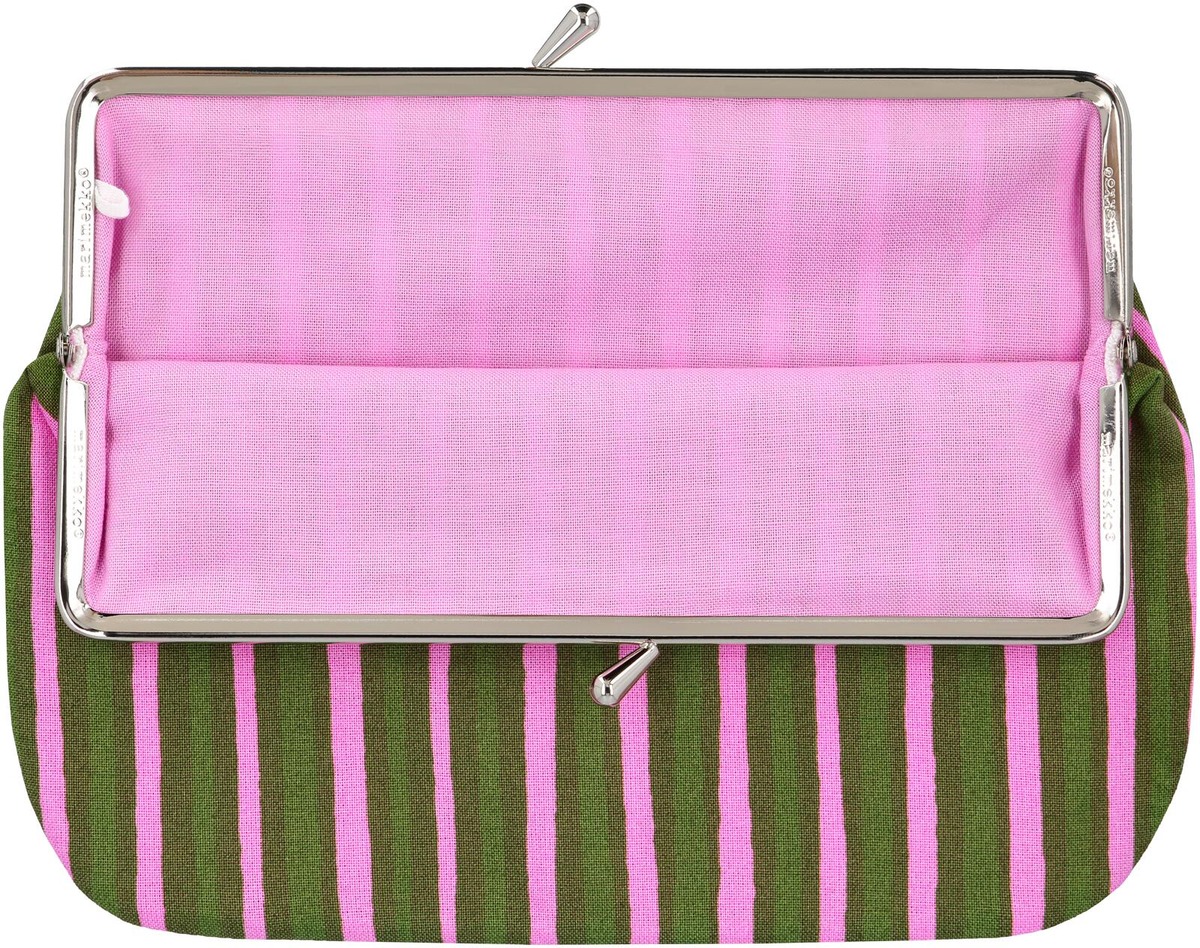 Puolikas kukkaro on valmistettu Piccolo-kuosisesta puuvillakankaasta, joka on painettu Helsingissä. Tilavassa kukkarossa on metallinen kehys, joka on helppo napsauttaa auki ja kiinni. Heti ensimmäisenä Marimekko-vuotenaan 1953 Vuokko Eskolin-Nurmesniemi loi Piccolon, vapain siveltimenvedoin maalatun raitakankaan. Kolme vuotta myöhemmin kauppoihin ja katukuvaan ilmestyi – ilmeisesti pysyvästi – kankaasta tehty paita nimeltään Jokapoika.