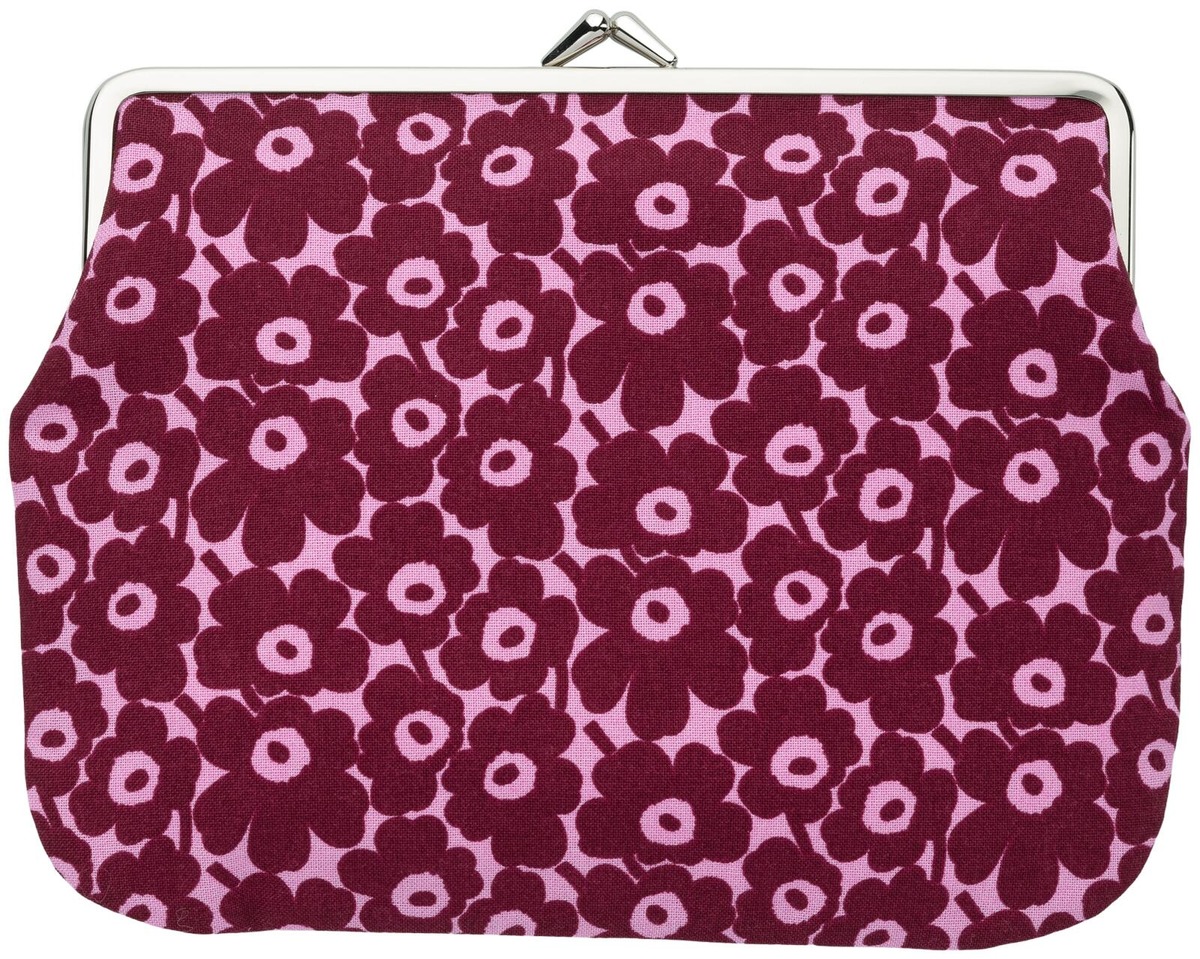 Puolikas kukkaro on valmistettu Mini Unikko -kuosisesta puuvillakankaasta, joka on painettu Helsingissä. Tilavassa kukkarossa on metallinen kehys, joka on helppo napsauttaa auki ja kiinni.