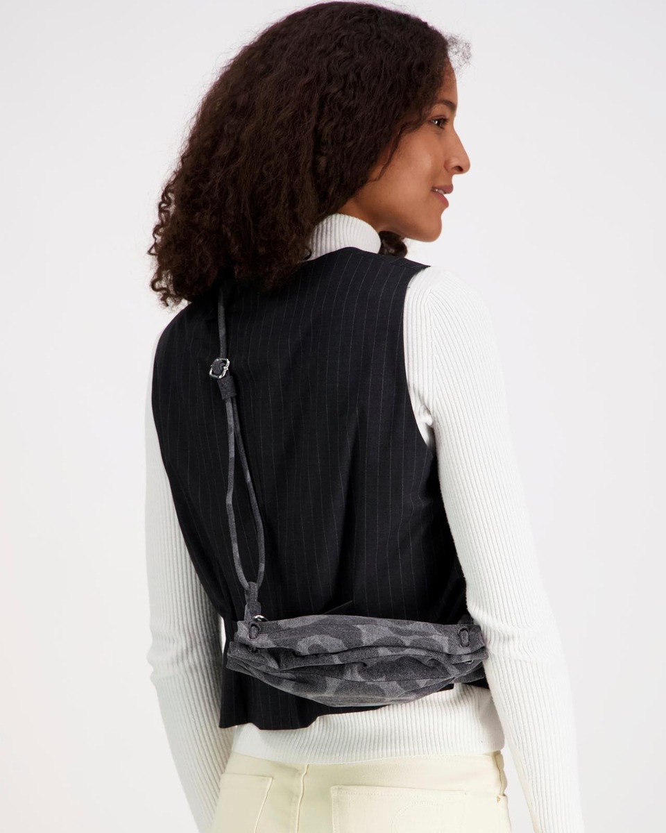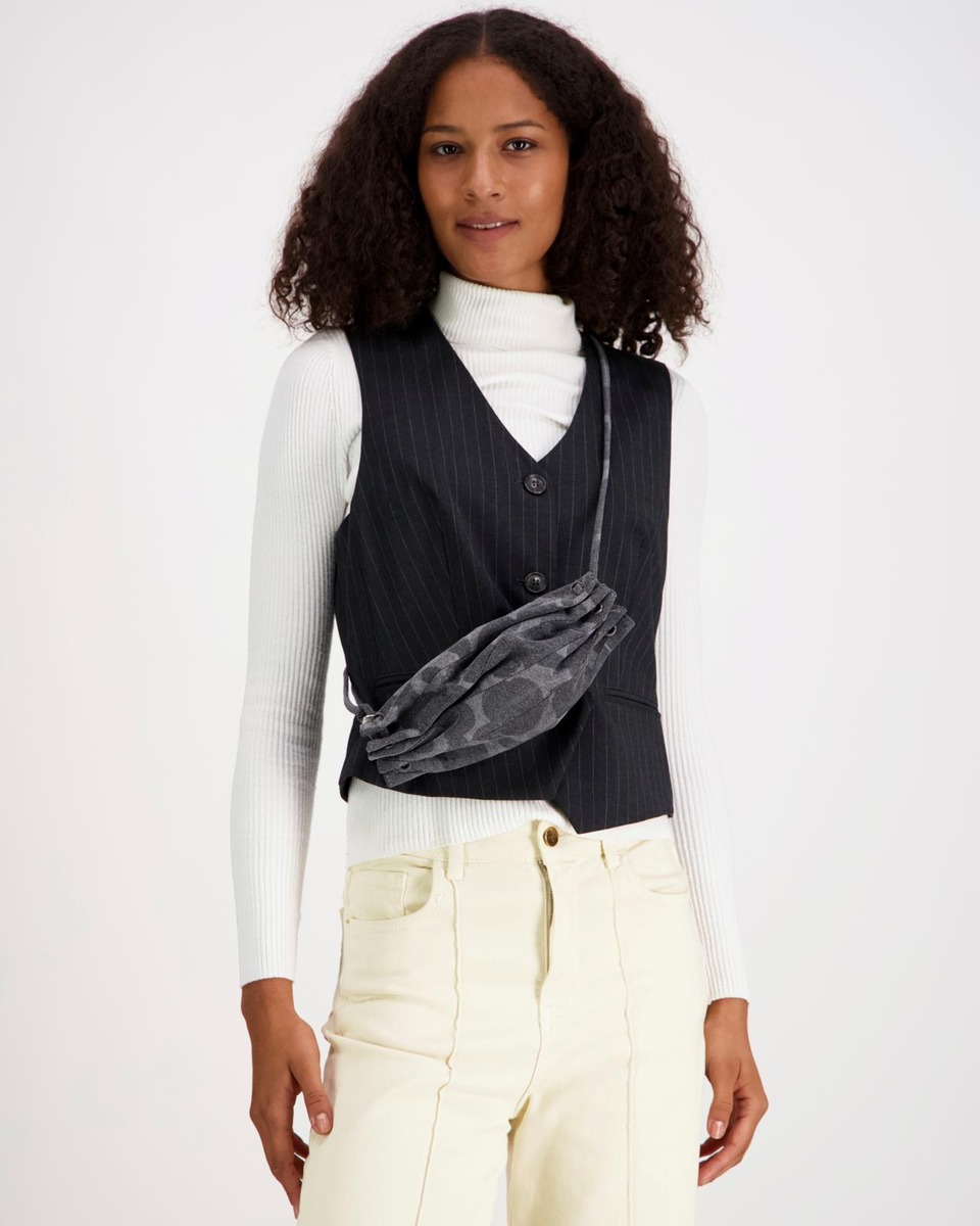 Unikko-kuosinen, karkkipaperista inspiraationsa saanut Pikku Karla Denim -olkalaukku on valmistettu puuvillakankaasta. Pienessä laukussa on kapea metallisoljella säädettävä olkahihna, vetoketjusuljenta ja sisäpuolella yksi vetoketjutasku. Laukun päämateriaali on puuvilladenim, joka sisältää 80 % luomupuuvillaa ja 20 % kierrätettyä puuvillaa. Sisävuori on valmistettu 100-prosenttisesta luomupuuvillasta. Puuvilladenim patinoituu ajan ja käytön myötä luoden jokaiselle tuotteelle ainutlaatuisen, yksilöllisen ilmeen.