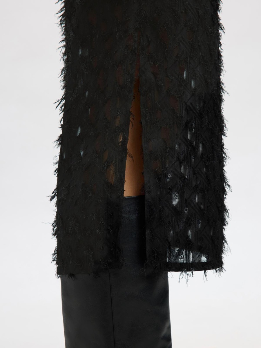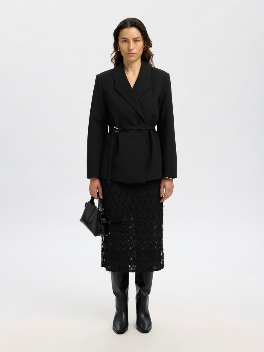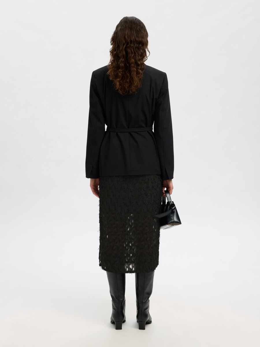Korkeavyötäröinen midimittainen hame. Valmistettu kauniista struktuurikankaasta.