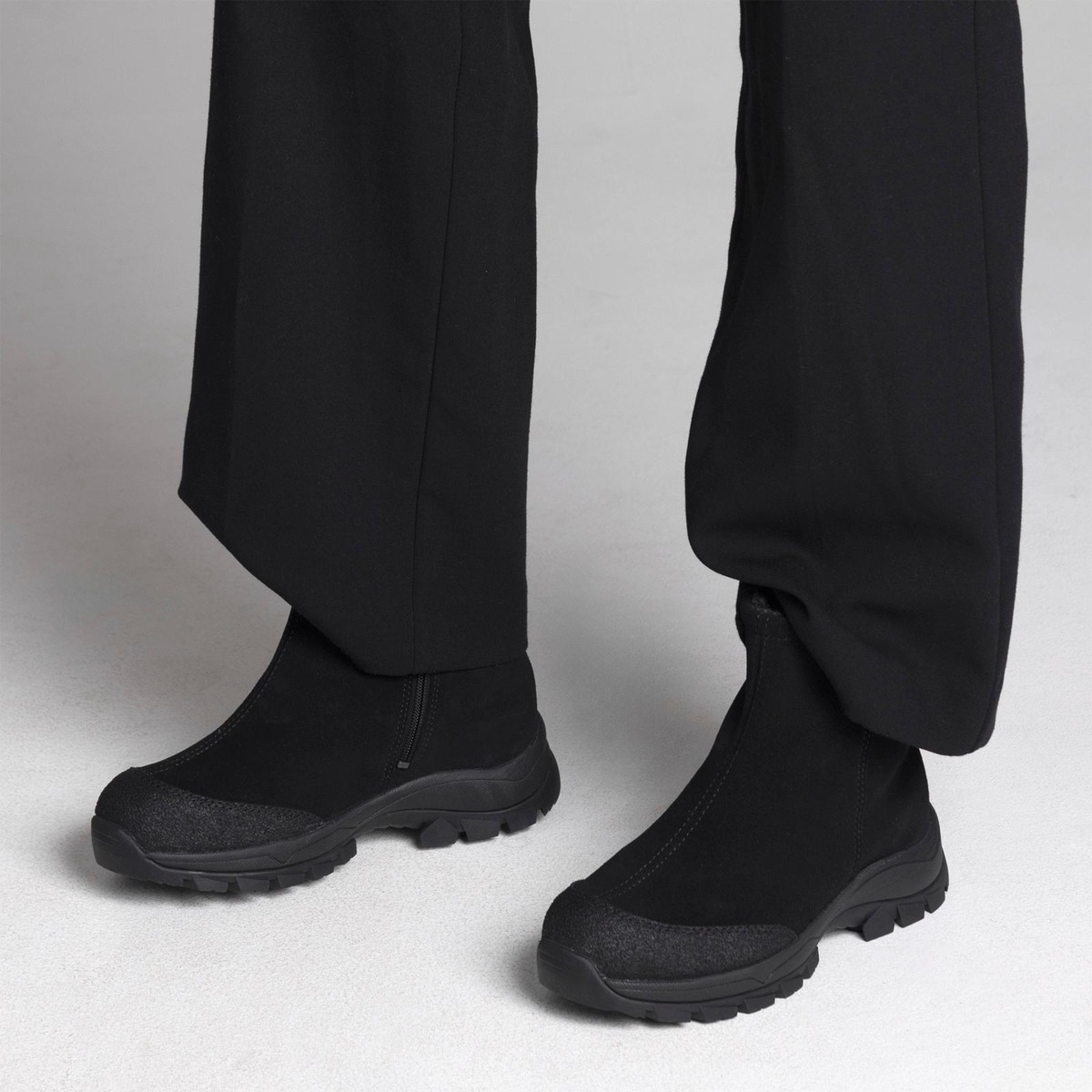Naisten citynilkkuri kosteutta ja likaa hylkivällä mokkanahka päällisellä, loskasuoja kärjessä, villasekoitevuorit, sivuvetoketju helpottaa kengän pukemista, irrotettava, muotoiltu pohjallinen, TR-kumipohjassa päkiällä pitoalue ja kannassa käännettävä liukueste. Tilava H-lesti.