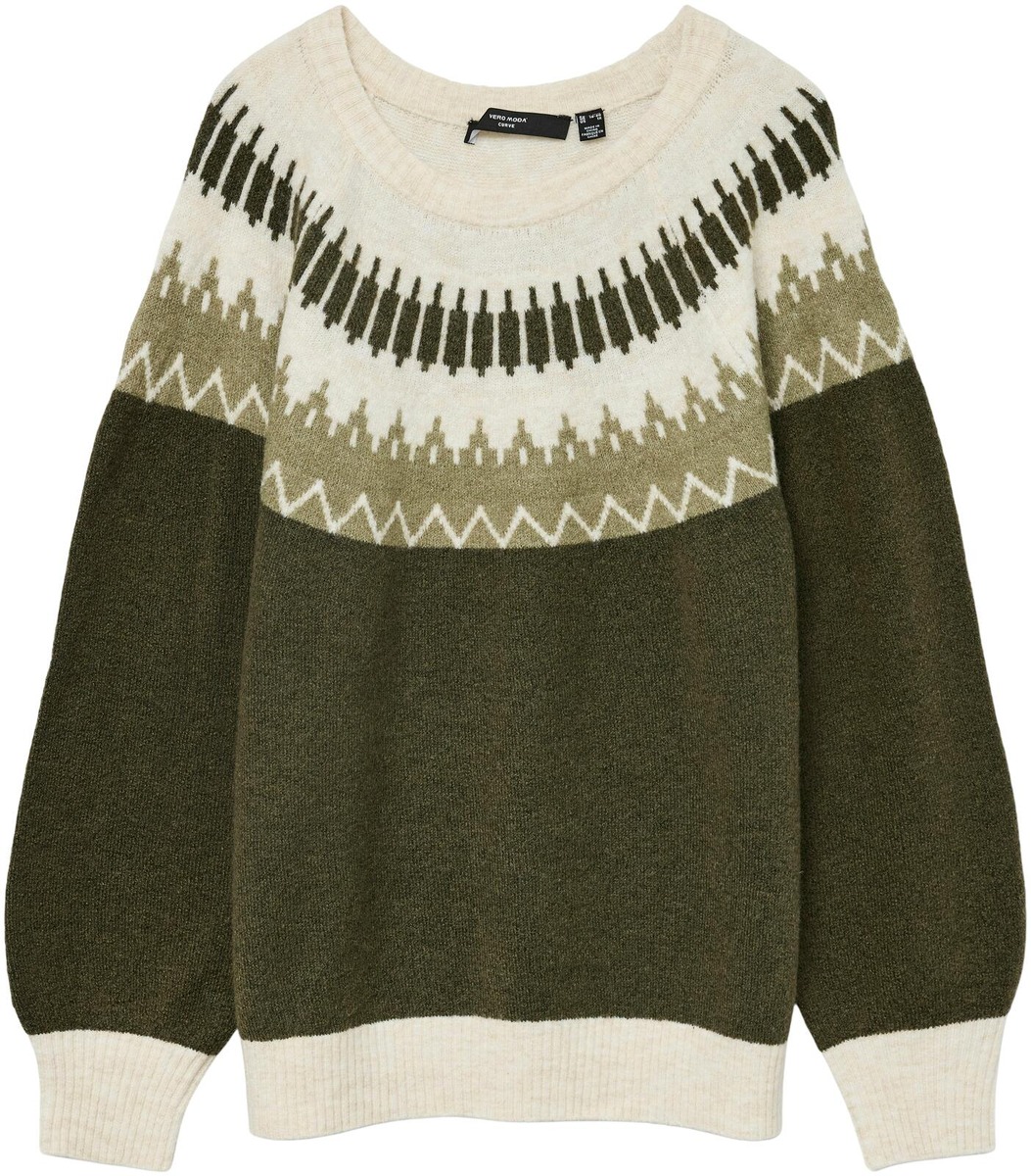 Pitkähihainen neulepusero pyöreällä pääntiellä. Muodikas kuvioneulos.