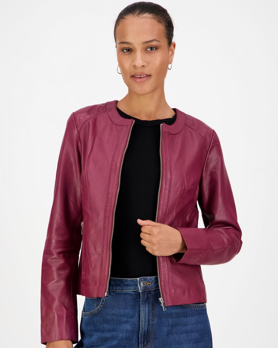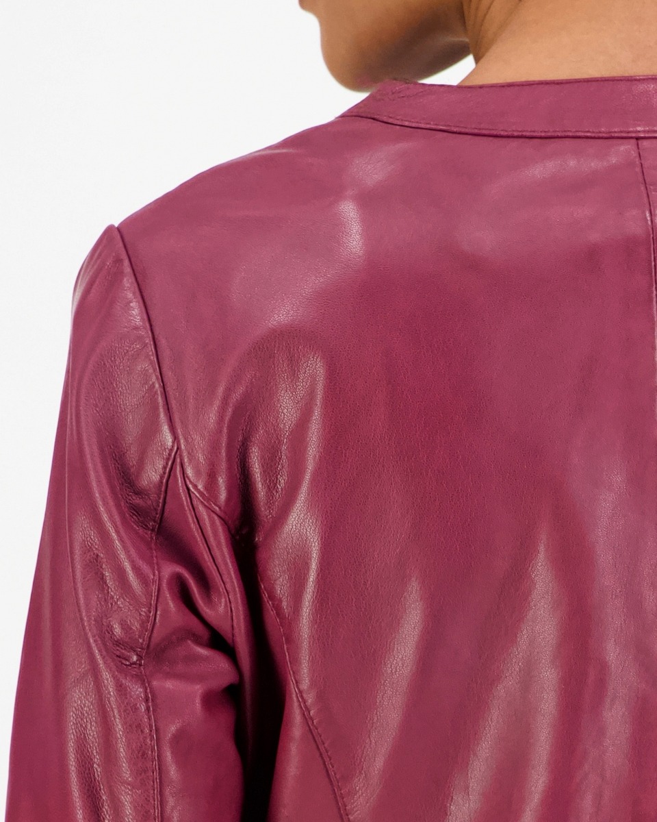 Lilliane on ajaton, yksinkertainen ja elegantti nahkatakki, joka sopii täydellisesti jokapäiväiseen käyttöön. Pyöreä kaulukseton pääntie antaa mahdollisuuden monipuoliseen pukeutumiseen, ja edessä oleva vetoketjukiinnitys tuo käytännöllisyyttä. Sivuilla olevat vetoketjutaskut lisäävät takin toiminnallisuutta.