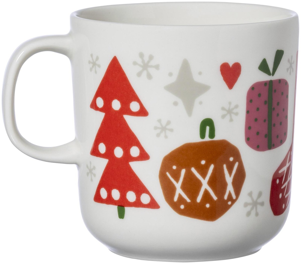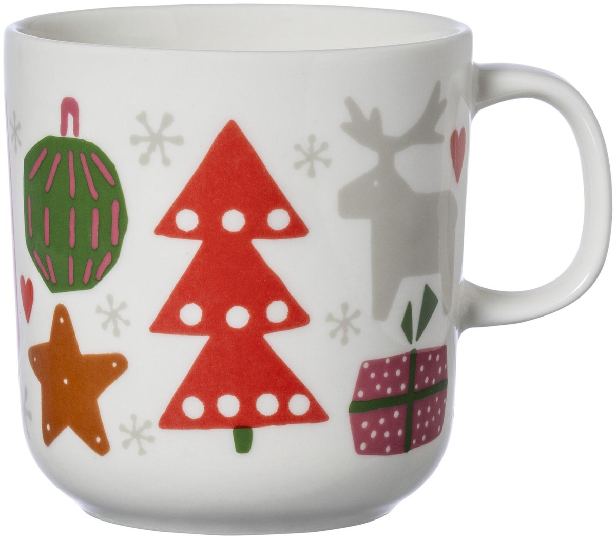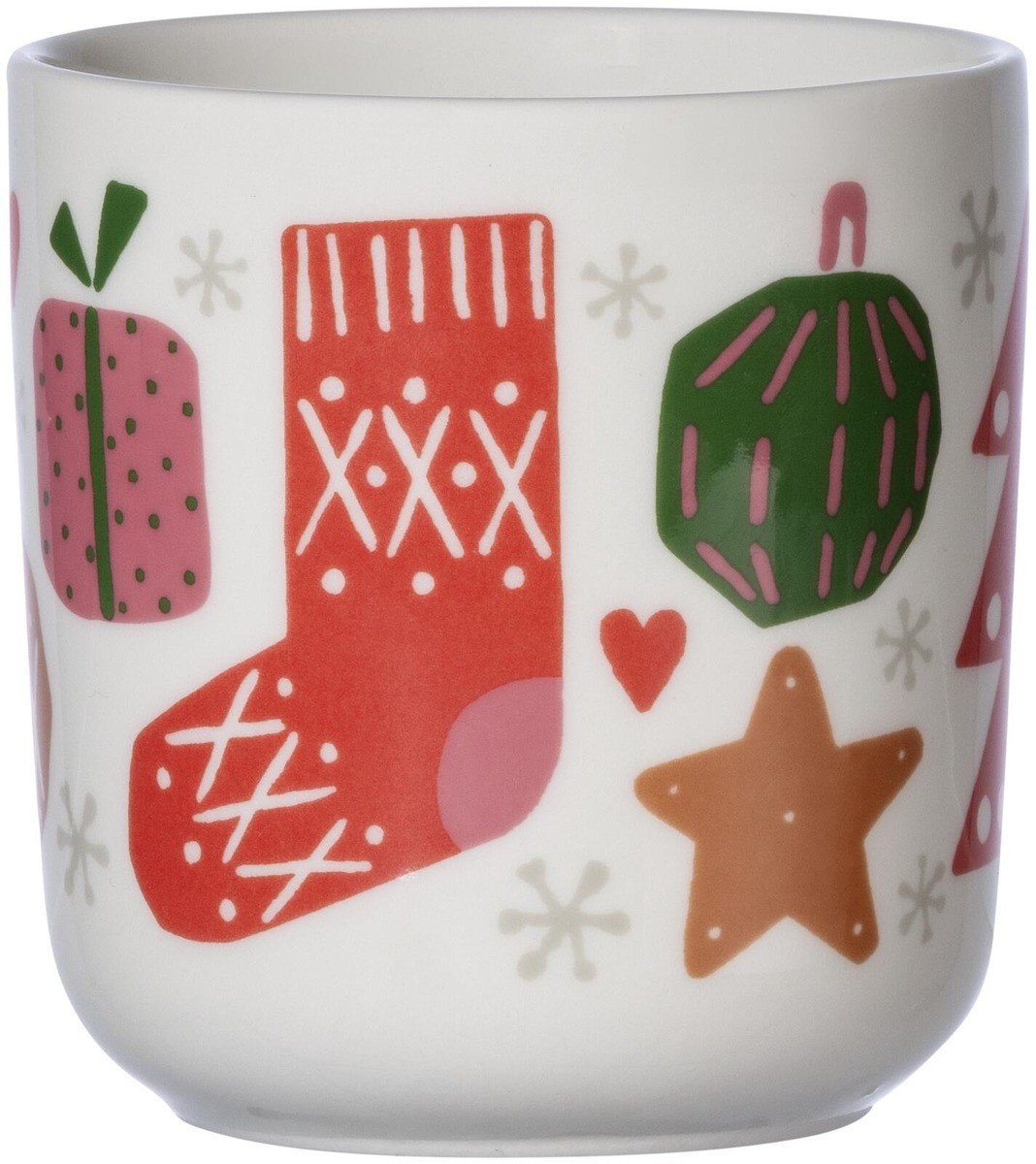 Riemukkaasti kuvioidut Aatto-mukit nostavat hymyn huulille. Graafiset kuviot ovat tuttuja suomalaisesta jouluperinteestä. Aatto-kuosin on suunnitellut Minna Niskakangas.