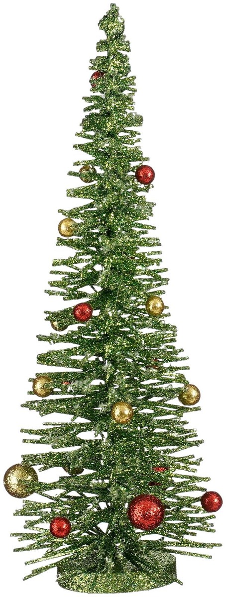 Vihreä koristekuusi palloilla. Korkeus 40 cm.