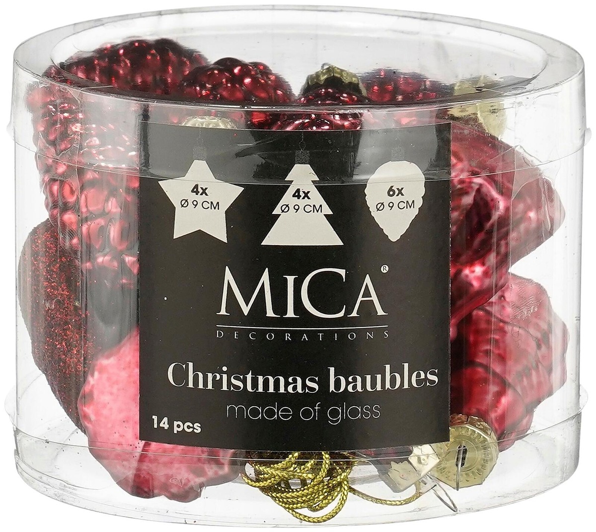 Mica decorations Lasinen riippukoriste 14 kpl/ rasia punainen