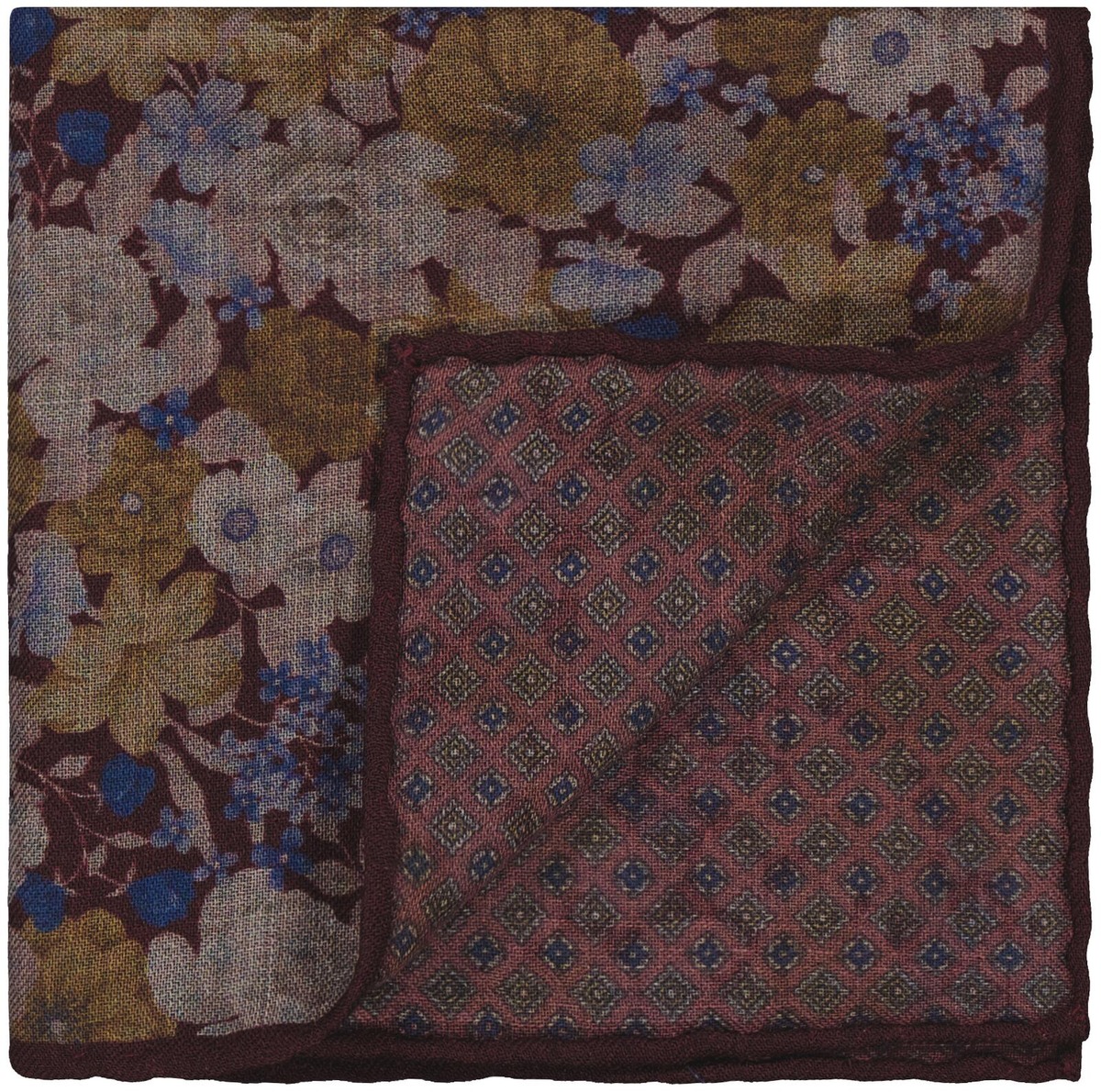 Tyylikäs Italiassa valmistetu taskuliina, jossa on eri kuviointi taskuliinan molemmilla puolilla.