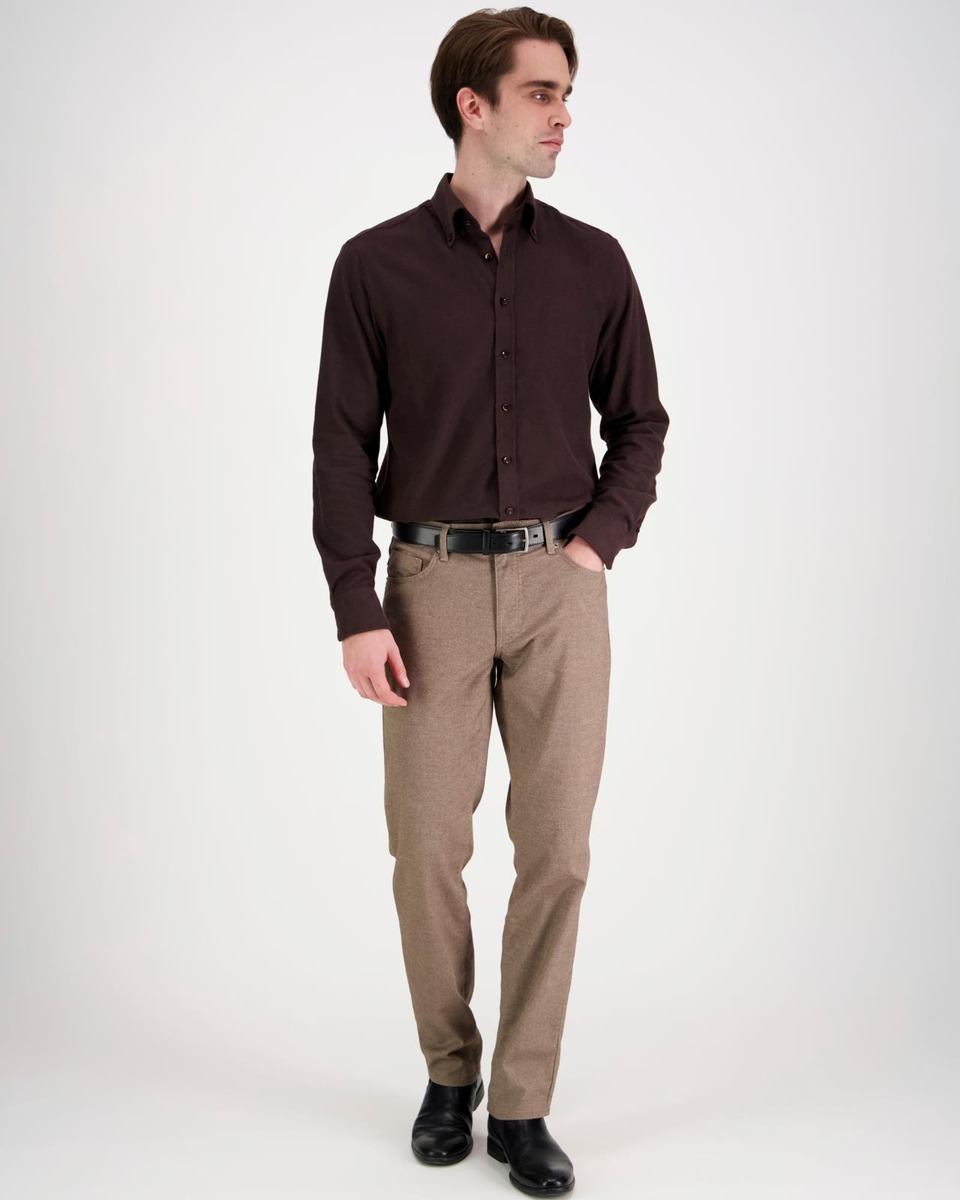Ylellisestä ja pehmeästä Abinin flanellikankaasta valmistettu kauluspaita. Paidan mitoitus on regular ja siinä on Button Down -kaulus. Paidan napit ovat aitoa helmiästä.