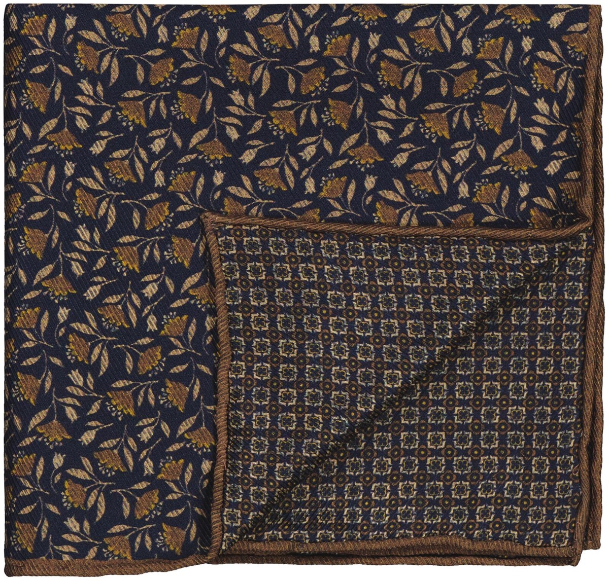 Tyylikäs Italiassa valmistetu taskuliina, jossa on eri kuviointi taskuliinan molemmilla puolilla.