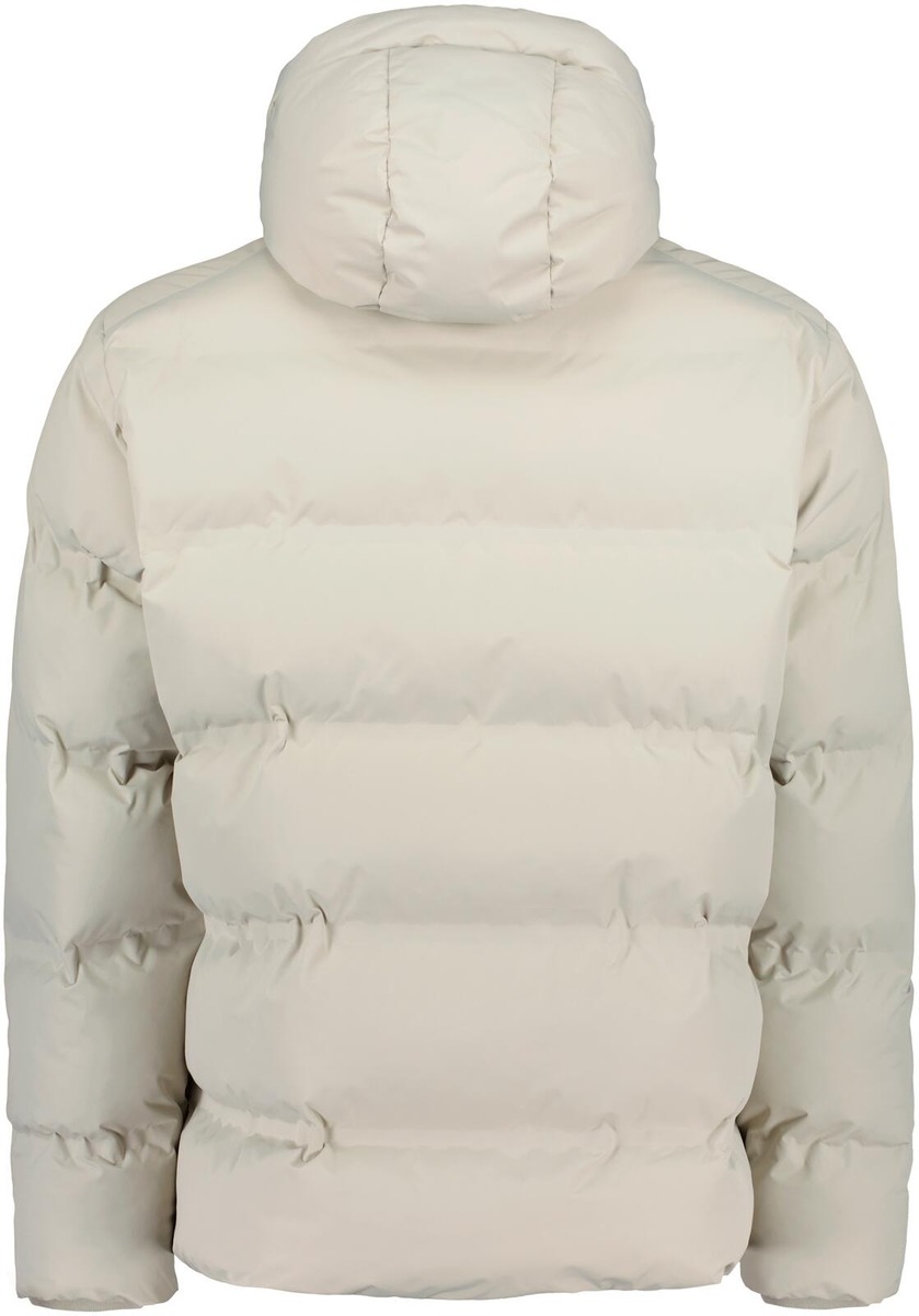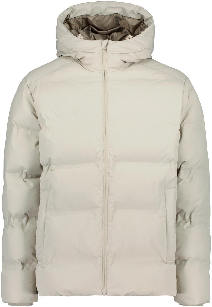 Miesten vettähylkivä toppatakki kiinteällä hupulla. Kaksi pistotaskua ja povitasku. Tämän tuotteen päämateriaali sisältää vähintään 50% kierrätettyä polyesteriä. Kierrätetty polyesteri säästää luonnonvaroja ja vähentää jätteen määrää. Koon L takapituus 70 cm.