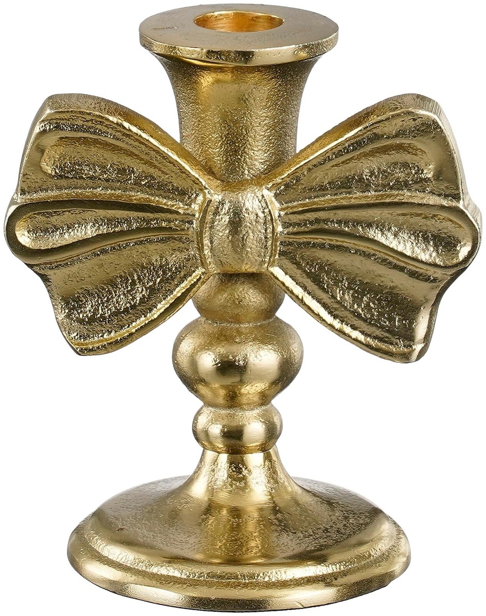 Kullanvärinen rusettiaiheinen kynttilänjalka.