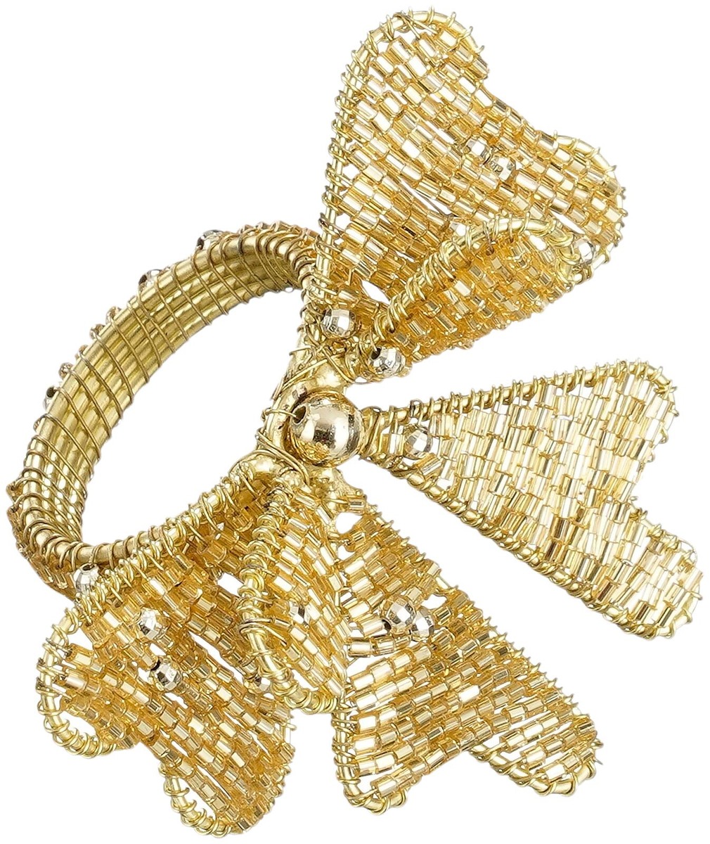 Kullanvärisessä serviettirenkaassa kullanvärinen rusetti.