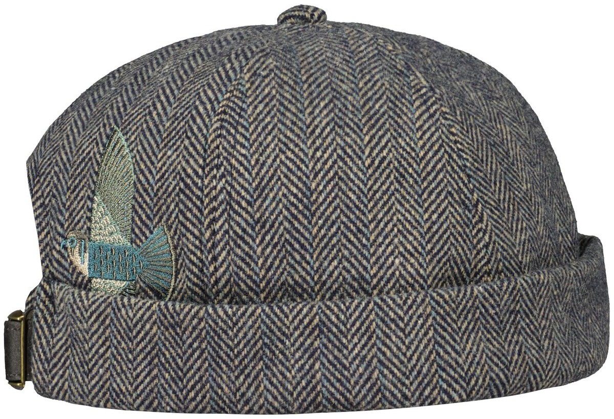 Tyylikäs Docker-mallinen lakki herringbonekankaasta. Tämä laadukas lakki yhdistää perinteisen kalanruotokuvion moderniin muotoiluun, luoden täydellisen yhdistelmän tyyliä ja lämpöä.