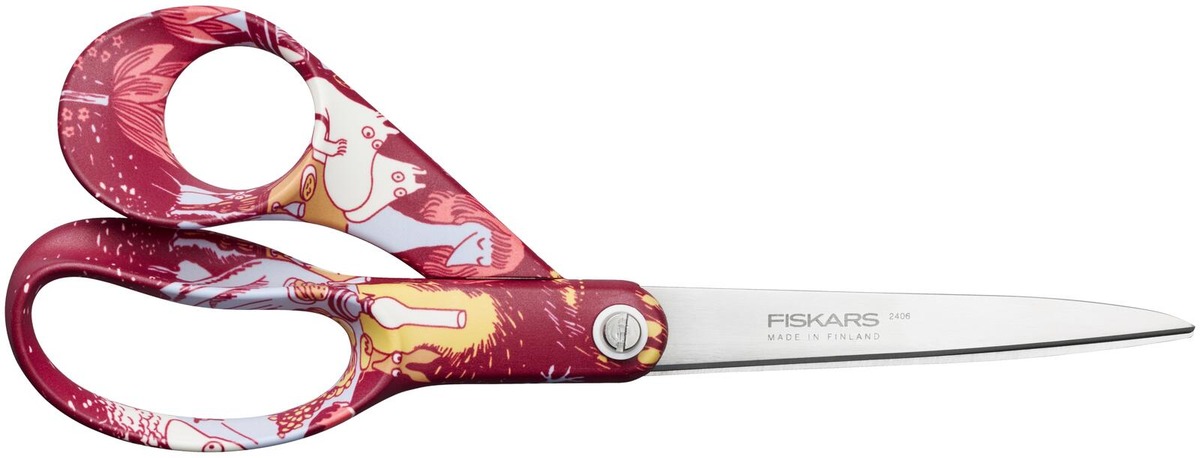 Juhlista yhteenkuuluvuutta ja ystävyyttä rajoitetun erän muumisaksilla! Saksien terät ovat korkealuokkaista ruostumatonta terästä. Kevyet, ergonomisesti muotoillut kahvat mahdollistavat tukevan otteen ja ovat miellyttävät käyttää. Valmistettu Suomessa, testattu käsin. Moomin Fiskars yleissakset 21 cm, Juhlan aika