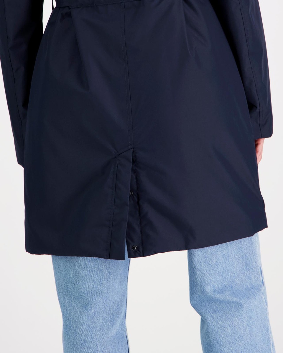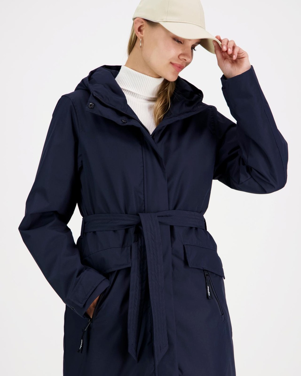 Ragwearin tyylikäs vyöllinen takki, jossa kevyt vanutäyte. Takin kangas on vedenpitävä ja vesipilariarvo on 8000 mm ja hengittävyysarvo 5000 mm. Takki on myös tuulenpitävä. Takissa on kiinteä huppu ja vetoketjuilla suljettavat sivutaskut. Kaikki Ragwearin tuotteet ovat vegaanisia ja PETA:n hyväksymiä.