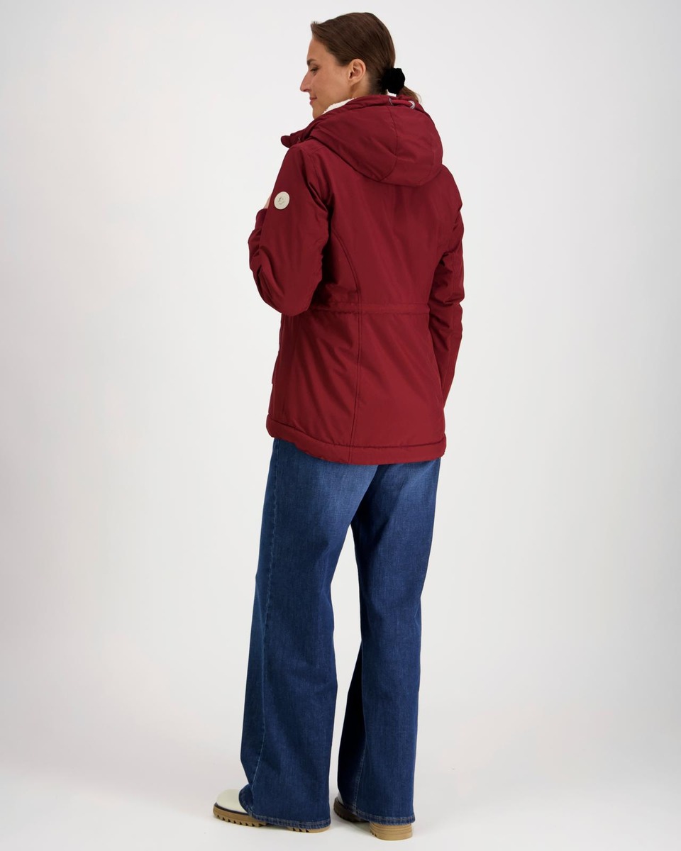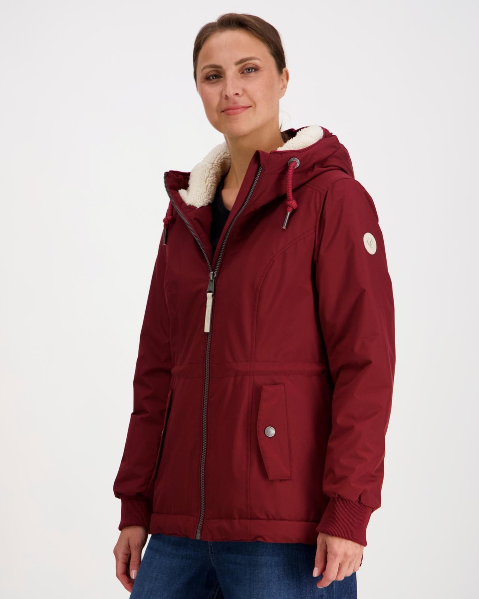 Naisten parkamallinen takki. Takissa vyötäröllä ja hupussa kiristysnyöri ja kiinteä huppu. Läpälliset, nepparikiinnitteiset taskut ja takissa on vedenpitävä ja tuulenpitävä kangas, vesipilariarvo 15 000 mm. Kapea mitoitus. Kaikki Ragwearin tuotteet ovat vegaanisia ja PETA:n hyväksymiä.