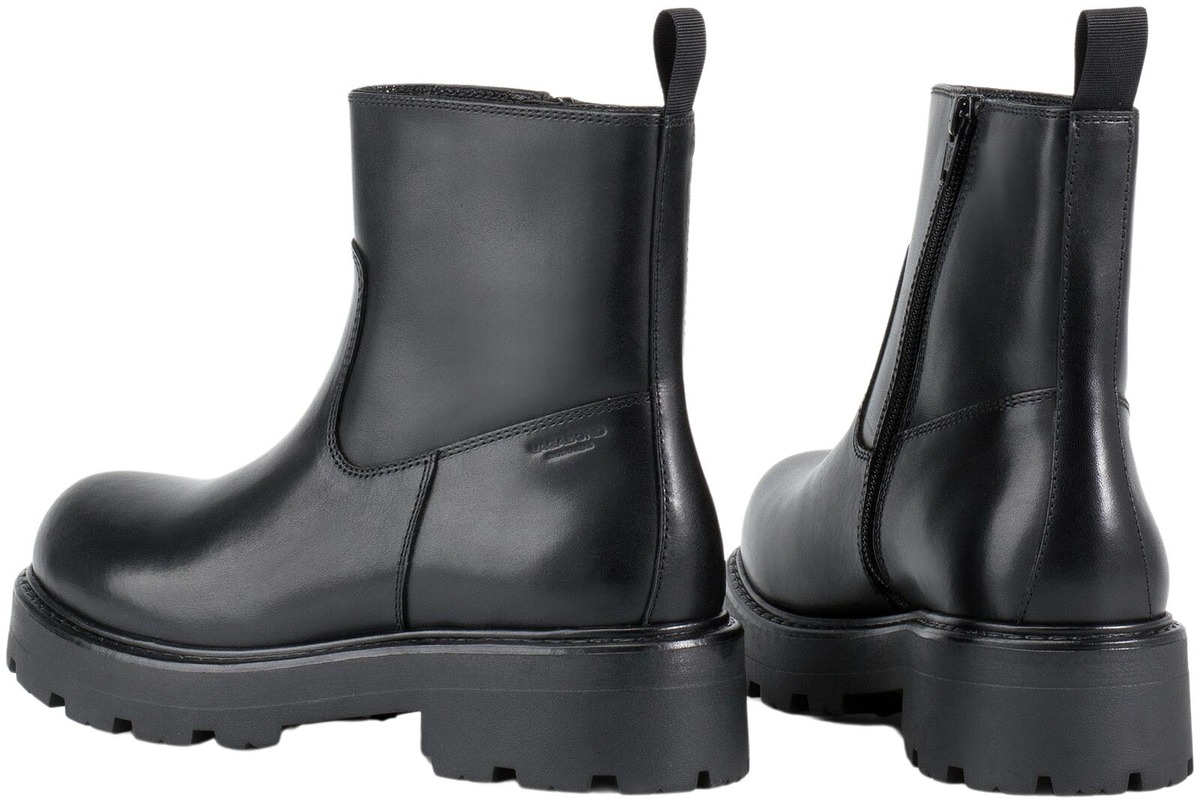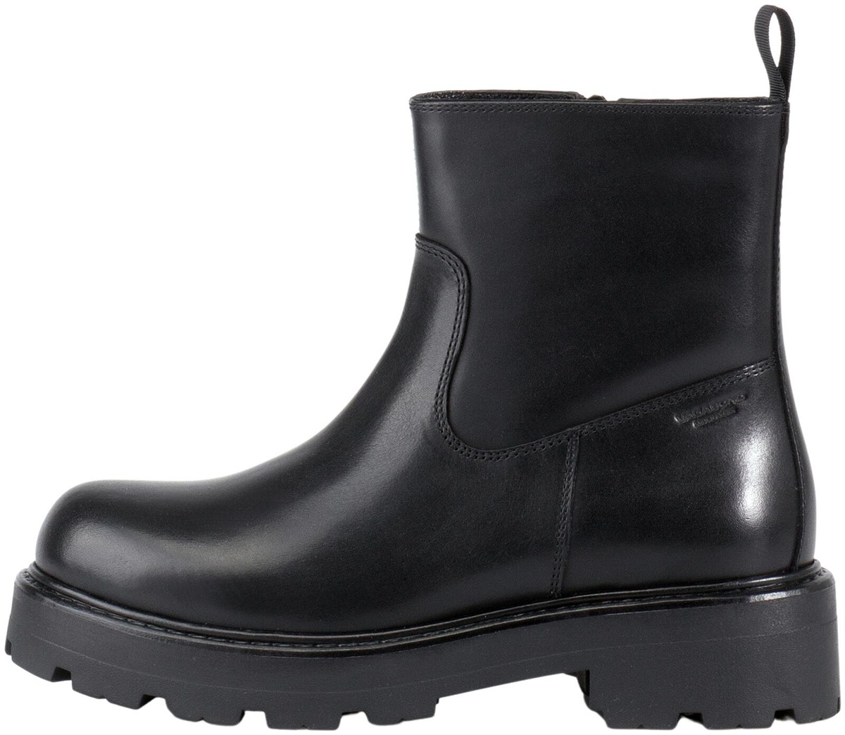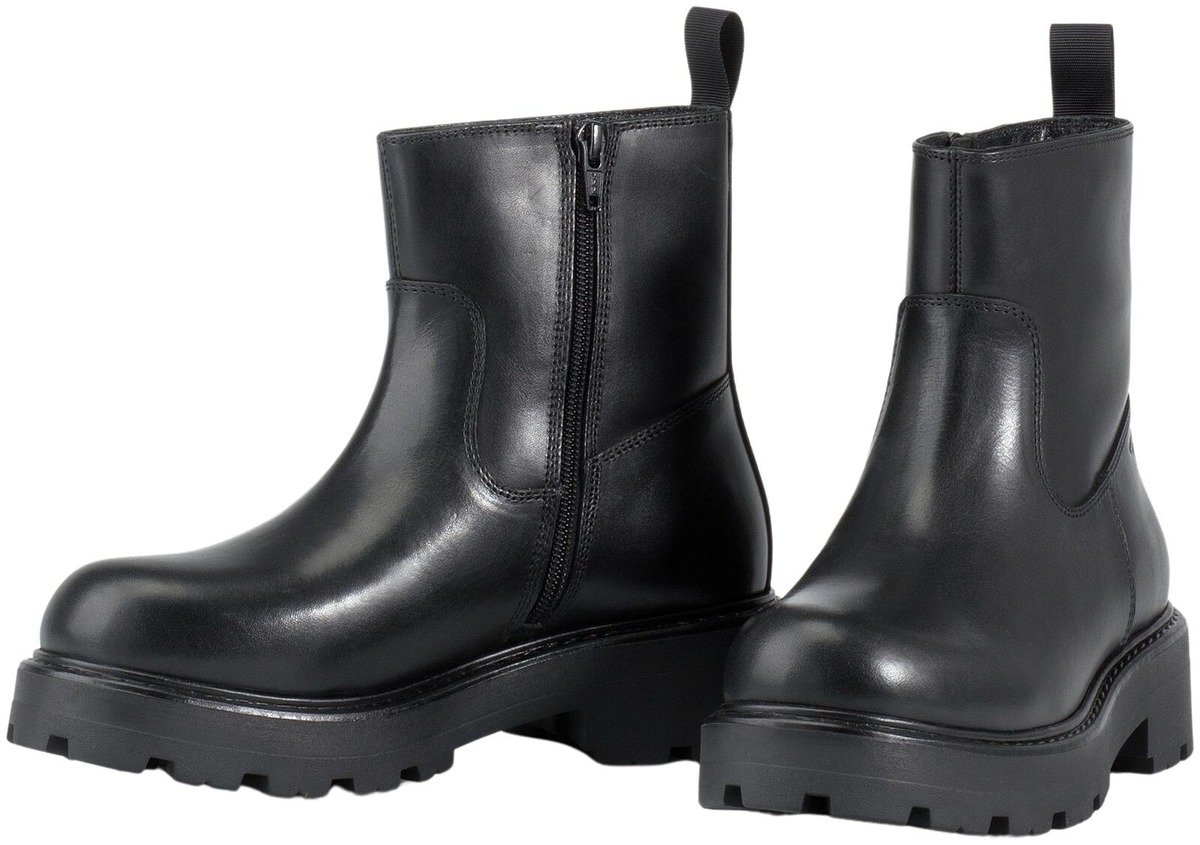 Lämminvuoriset Cosmo 2.0-nilkkurit paksulla ulkopohjalla. Valmistettu mustasta nahasta, lämmin vuori ja vetoketjukiinnitys. Vankat korot ovat 4,5 cm. Kengän yksityiskohtiin kuuluvat myös vetolenkit.