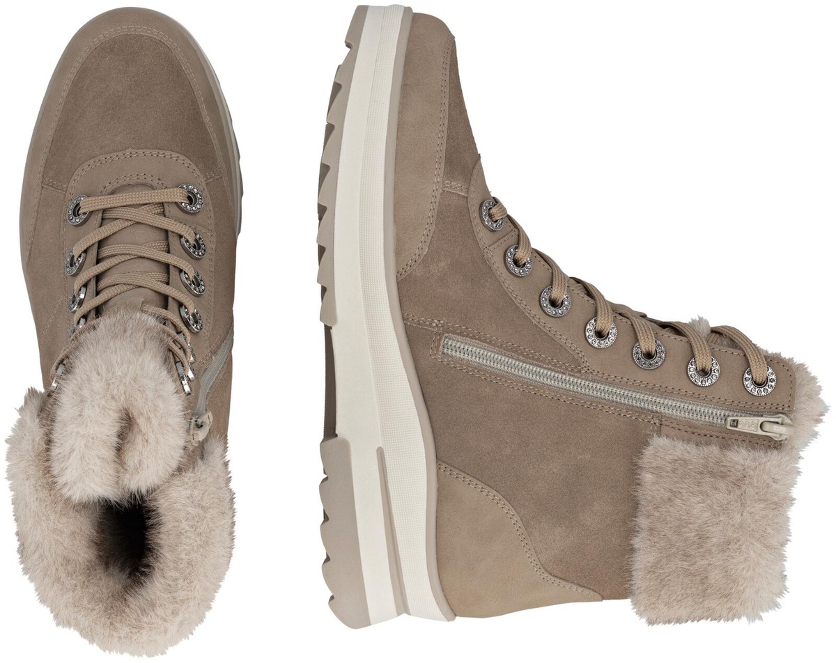 Käytännölliset nilkkurit, joissa yhdistyvät tyyli ja mukavuus. Nauhat tarjoavat säädettävyyttä, ja vetoketju sisäreunassa helpottaa pukemista. Nämä nilkkurit ovat täydellinen valinta kylmiin päiviin lammasturkisvuorinsa ansiosta.