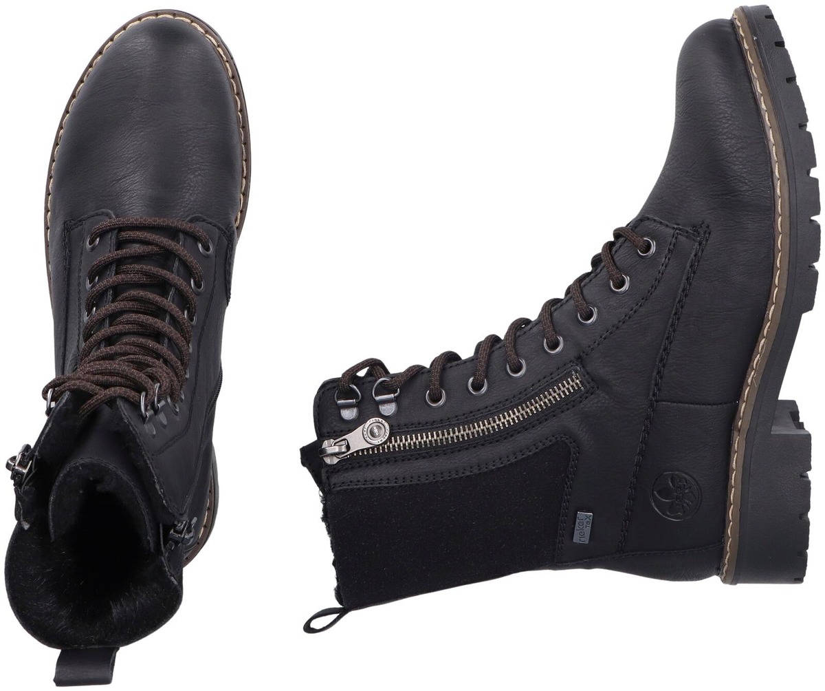 Näissä nauhallisissa nilkkureissa yhdistyvät tyyli ja mukavuus. Nauhat ja vetoketju sekä sisä- että ulkoreunassa tekevät pukemisesta helppoa ja antavat kengille modernin ilmeen. Lämminvuori pitää jalat lämpiminä kylminä päivinä, ja RiekerTEX-kalvo suojaa kosteudelta. Irrotettavat pohjalliset tarjoavat lisämukavuutta.