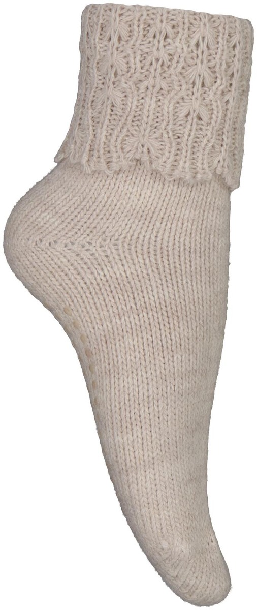 Ylelliset alpakkasekoitesukat pitsineuloskäänteellä antavat kotona oleiluun täydellistä mukavuutta ja lämpöä kun sitä eniten tarvitaan.