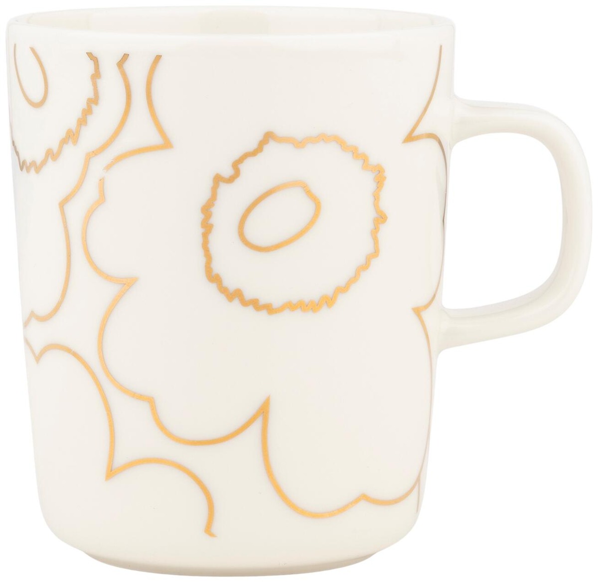 Oiva-muki on valmistettu valkoisesta keramiikasta ja siinä on kultametallipigmentillä painettu Piirto Unikko -kuosi. Kultauksen takia suosittelemme tuotteelle käsinpesua. Tuote ei sovellu mikroaaltouuniin. Poistathan astioiden pohjassa olevan tuotetarran ennen käyttöä. Tarra sisältää metallia.Oiva-tuotteet on suunnitellut Sami Ruotsalainen. Luovuutta ja rohkeutta symboloiva Unikko syntyi aikana, jolloin Marimekon kuviomaailmaan ei juuri kuulunut kukkia. Maija Isolaa kukka-aihe kuitenkin kiinnosti, ja hän päätti suunnitella kokonaisen sarjan uudenlaisia vahvoja kukkakuoseja.
