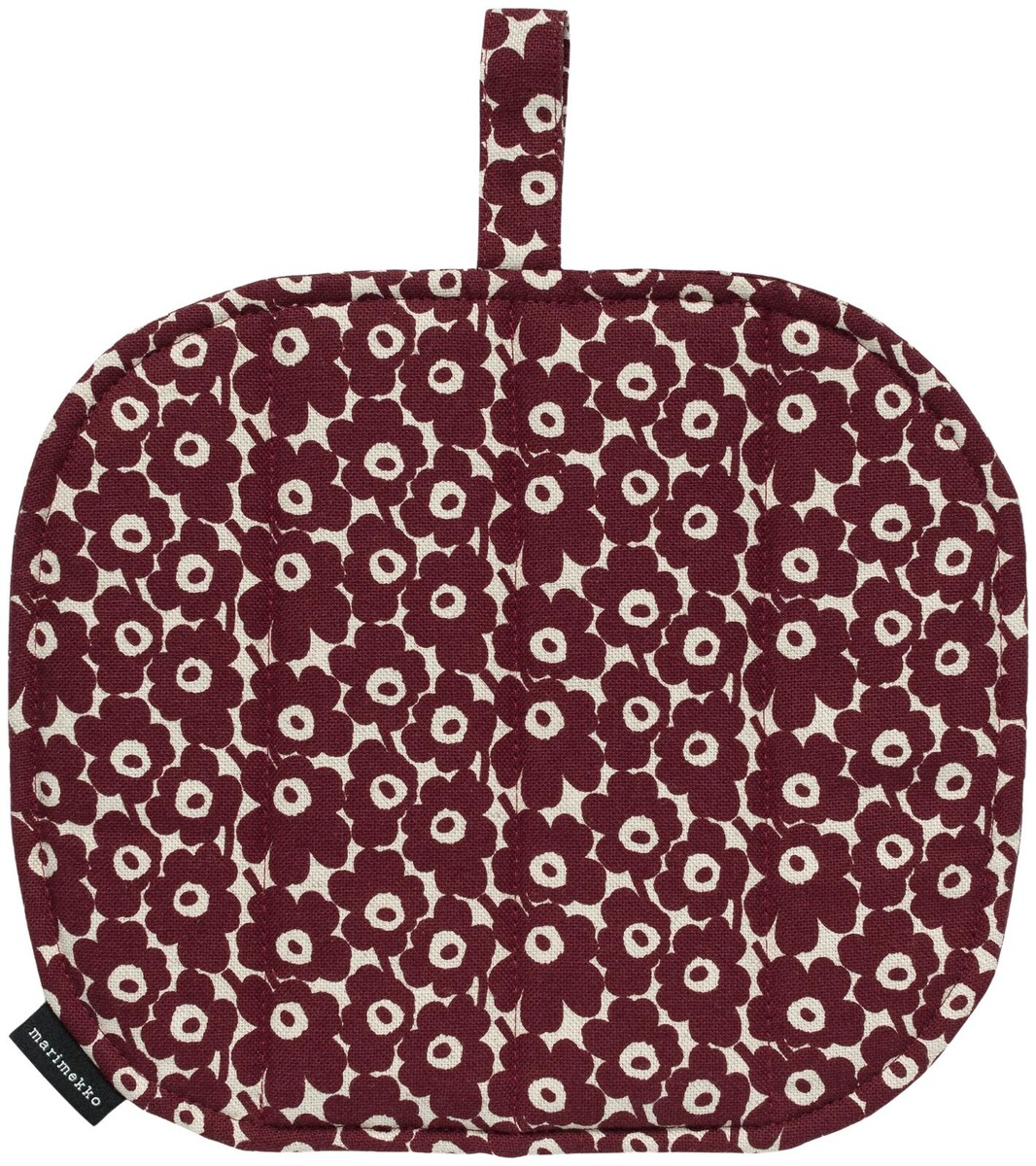 Pikkuinen Unikko -kuosinen pannulappu on painettu Helsingissä ja siinä on toppaus sekä lenkki ripustamista varten.Pannulappu on valmistettu valkaisemattomasta puuvillapellavakankaasta. Tuote sisältää 46 % kierrätettyä puuvillaa ja 21 % kierrätettyä pellavaa. 50 % tuotteen toppauksessa käytetystä polyesterista on kierrätettyä.Valkaisemattomille sekä kierrätyskuituja sisältäville kankaille on ominaista eläväinen väri ja pinta. Kankaassa voi esiintyä pieniä erivärisiä kohtia, ja tuotteiden välillä saattaa esiintyä eroja tämän ominaisuuden suhteen.Luovuutta ja rohkeutta symboloiva Unikko syntyi aikana, jolloin Marimekon kuviomaailmaan ei juuri kuulunut kukkia. Maija Isolaa kukka-aihe kuitenkin kiinnosti, ja hän päätti suunnitella kokonaisen sarjan uudenlaisia vahvoja kukkakuoseja.