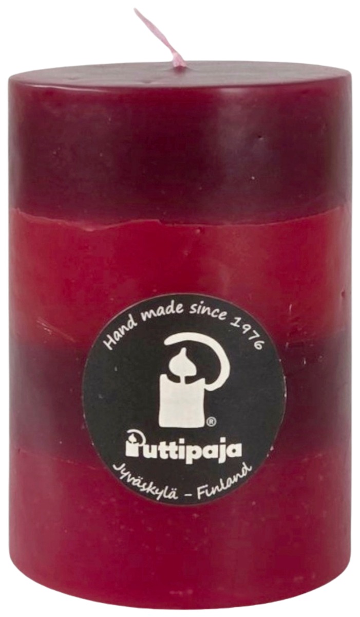 Puttipajan raitakynttilöissä leikitellään erilaisilla herkullisilla väriyhdistelmillä. Läpivärjätty raitakynttilä säilyttää kauniin värinsä myös kynttilän palaessa. Puttipajan pöytäkynttilän pintakuviointi on vivahteikkaan eläväinen, jota kynttilän liekin valo korostaa kauniisti.