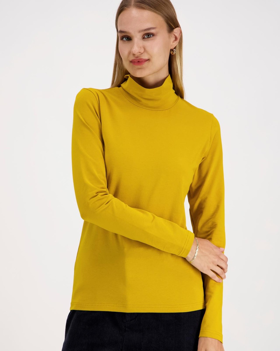 Naisten yksivärinen Mari-poolopusero. Istuvassa matalakauluksellisessa poolopuserossa on täyspitkät hihat. Puseron pituus koossa M on noin 65 cm. Materiaali on miellyttävää ja joustavaa luomupuuvilla-elastaani-neulosta.