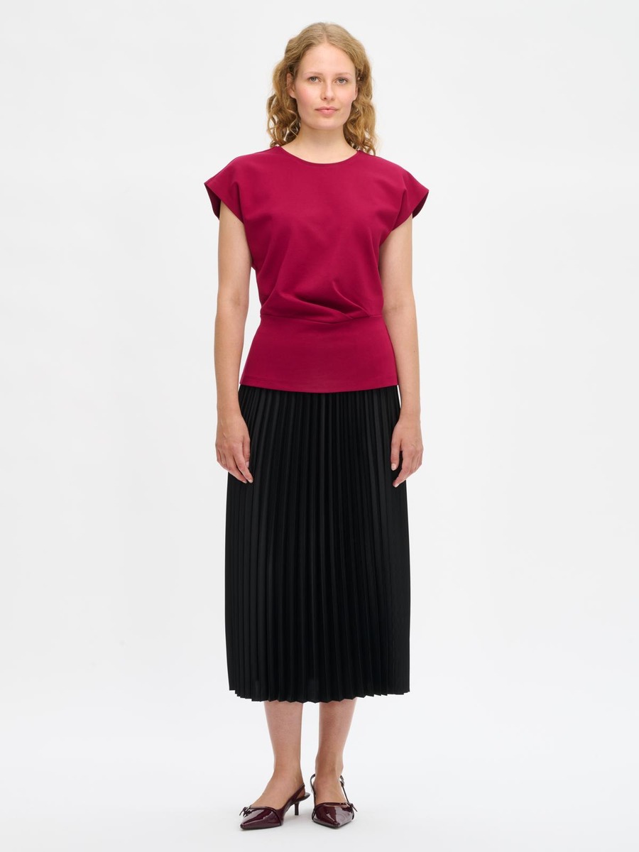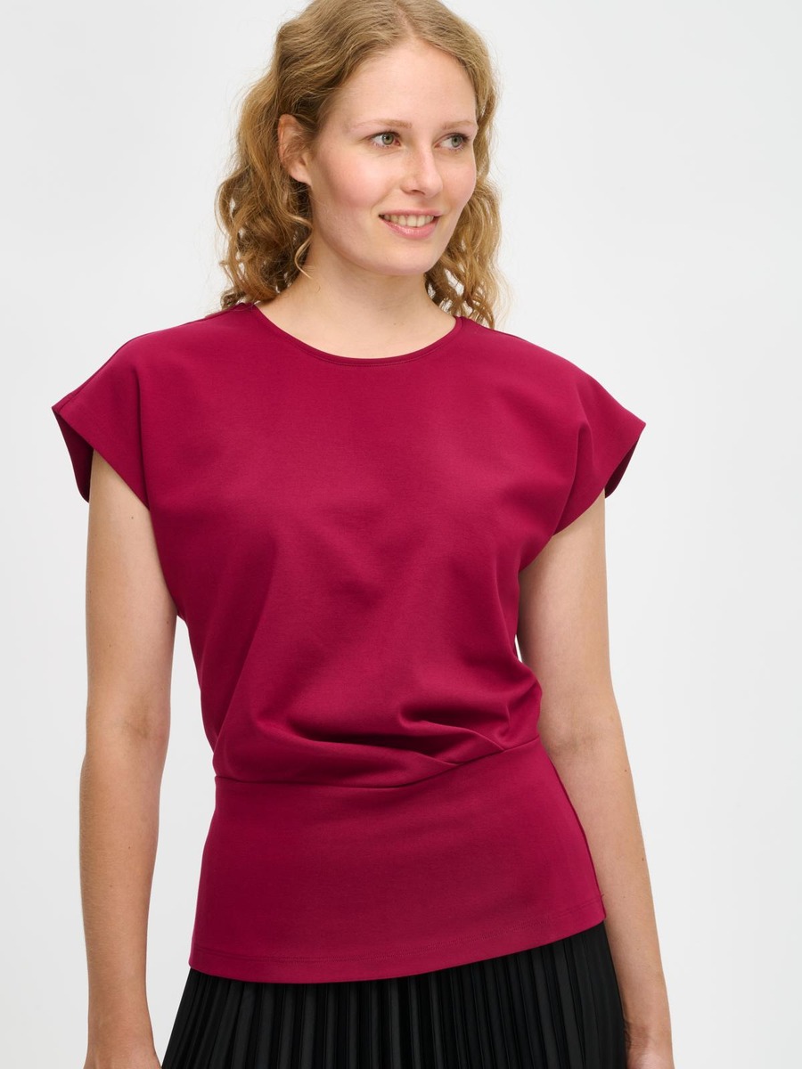 Naisten ajaton yksivärinen Elegia-paita. Paidassa on pyöreä pääntie, holkkihihat ja edessä vyötäröllä laskokset. Paidan pituus koossa M on noin 64 cm. Materiaali on miellyttävän tuntuista interlock-neulosta.