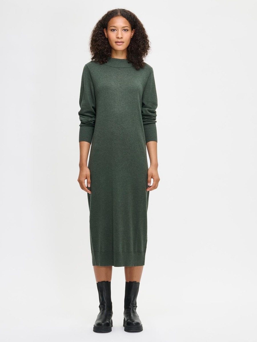 Naisten yksivärinen Villis-mekko. Suoralinjaisessa neulemekossa on pystykaulus ja täyspitkät hihat. Mekossa on resori helmassa ja hihansuissa. Mekon pituus koossa M on noin 120 cm. Materiaali on laadukasta merinovillan ja puuvillan sekoitetta. Tuotteen valmistuksessa on käytetty sertifioitua mulesing-vapaata merinovillaa.