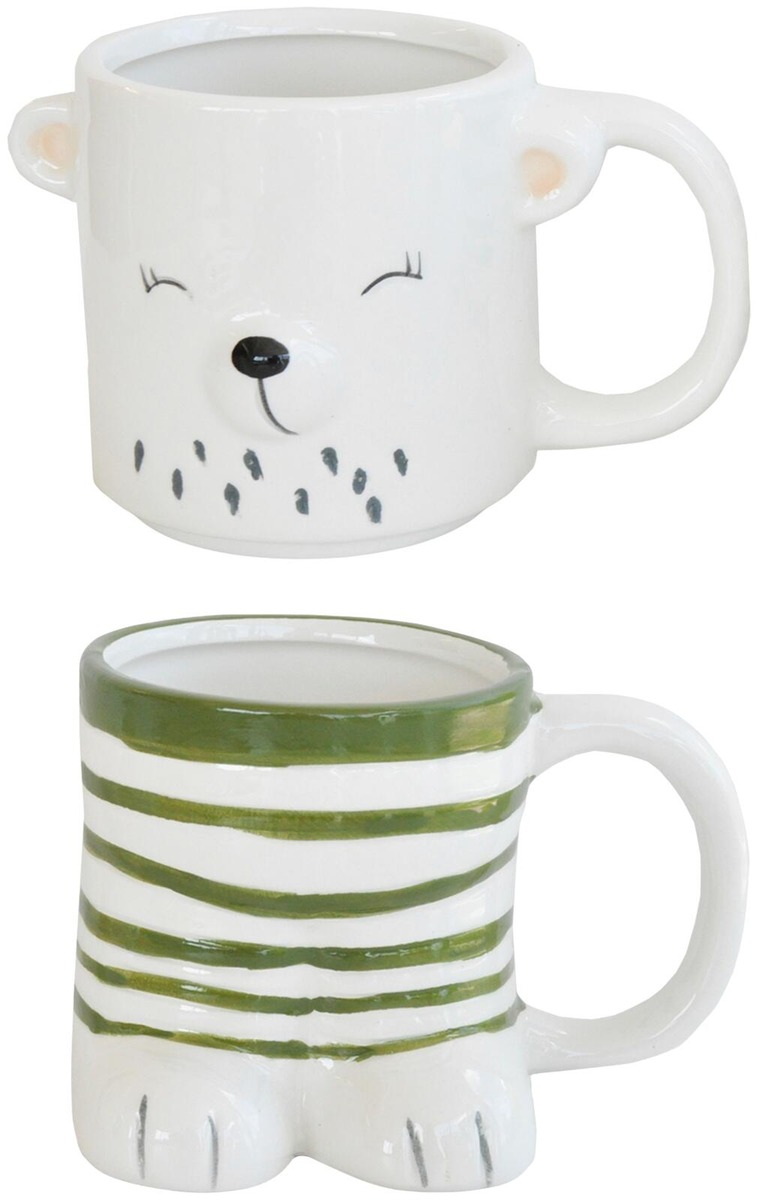 Pakkaus, joka sisältää kaksi keraamista mukia.