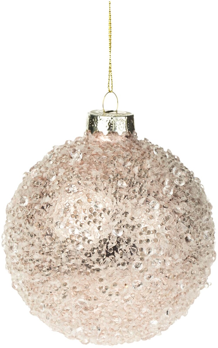 Weiste lasipallo 8cm vanha roosa, jäähileitä.
