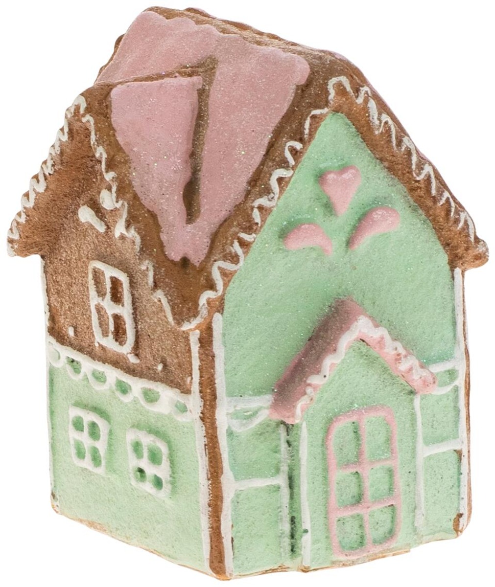 Weiste piparkakkutalo 12x10cm, ruskea-pinkki-vihreä resin.